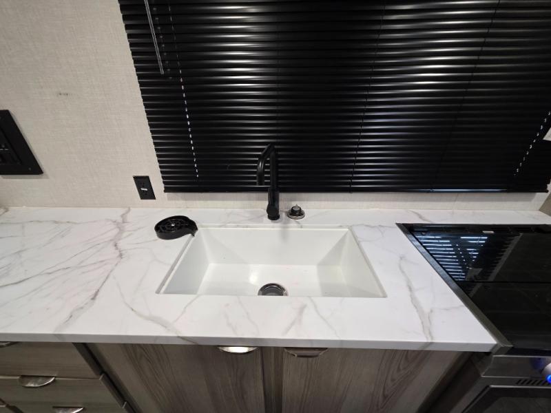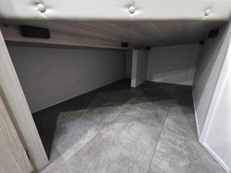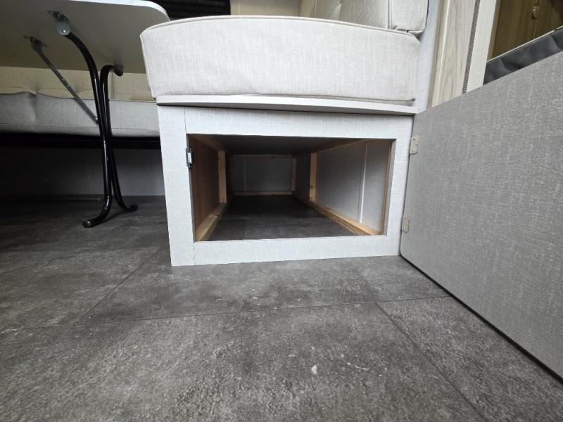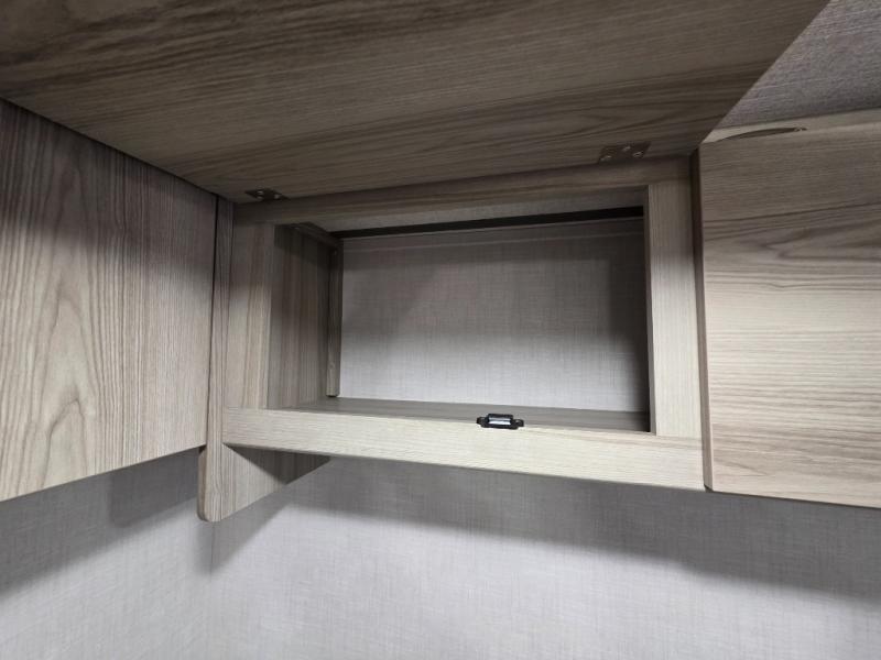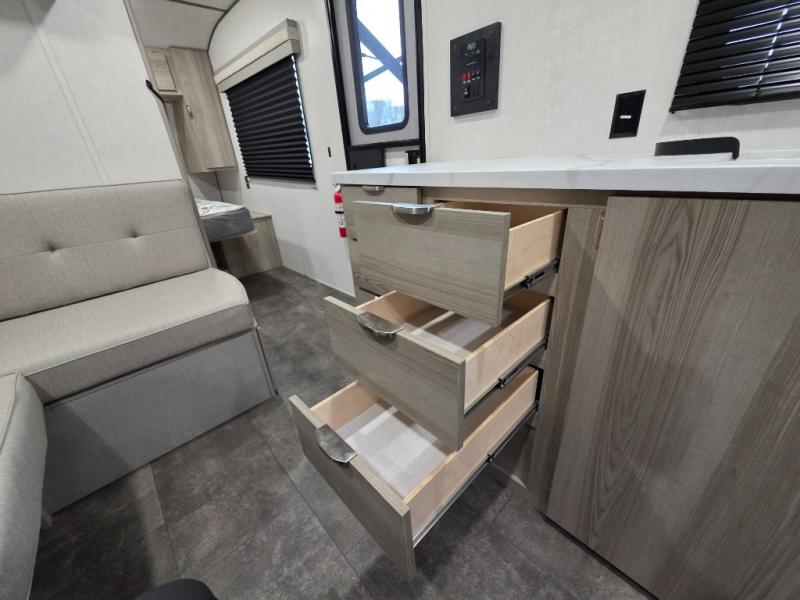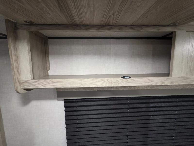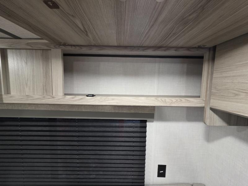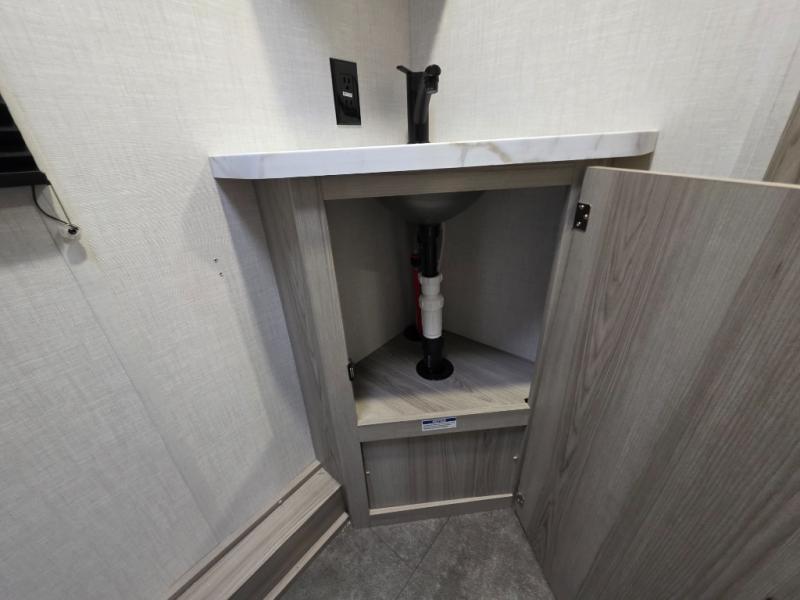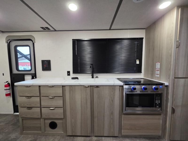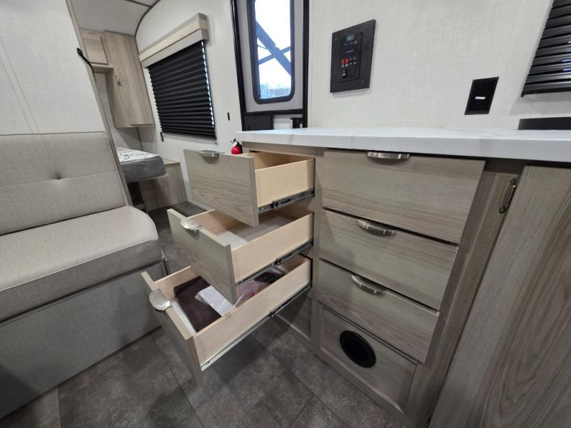 Camping is made easy in this travel trailer with more sleeping space and lots of comforts! The kids or your guests will enjoy the double-size bunks in the back, along with the full bath close by for easy nighttime use. You'll have the front private bedroom with a king bed all to yourselves, and there are dual bedroom wardrobes to keep your space neat and clean. Everyone can meet in the combined kitchen and living room to relax on the super U-lounge with a removable table while the chef of your group makes breakfast on the two burner cooktop. There is also a microwave oven for quick meals, plus a pantry and large under counter refrigerator for food storage!