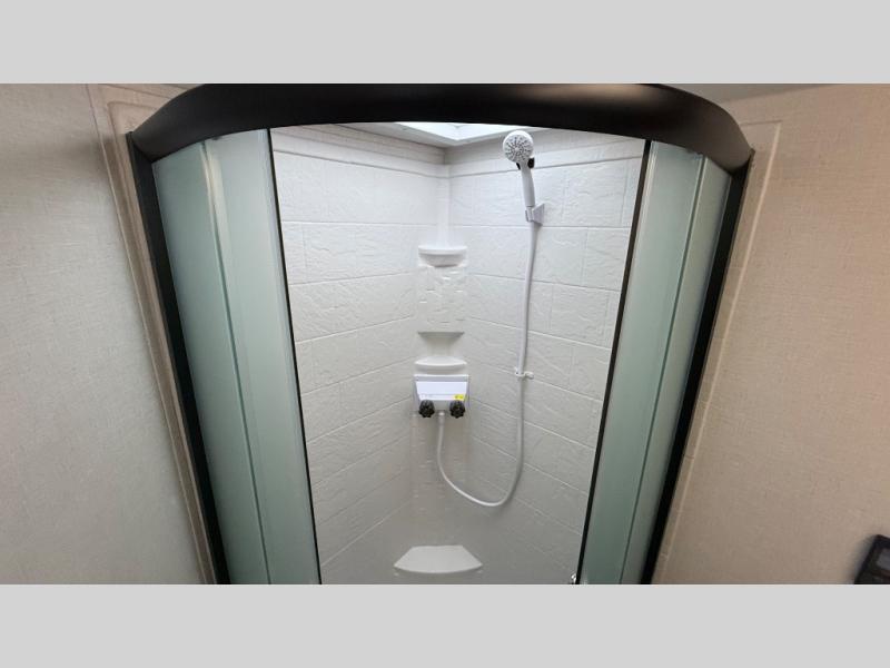 The Wildwood travel trailers by Forest River are your ticket to fun and adventure! They are constructed with an AlphaPly roof membrane and a cambered powder coated I-beam chassis for added durability. The R-7 fiberglass insulation throughout will help extend your camping season and the aerodynamic front radius profile will make towing easier than ever. You will love the new shaker style cabinet doors, thermo foil countertops, and 6' 8" interior height. Each model includes a ducted 15K A/C and 30K BTU furnace to keep you comfortable all year long, and the 60K BTU tankless water heater will allow everyone to freshen up with a hot shower.