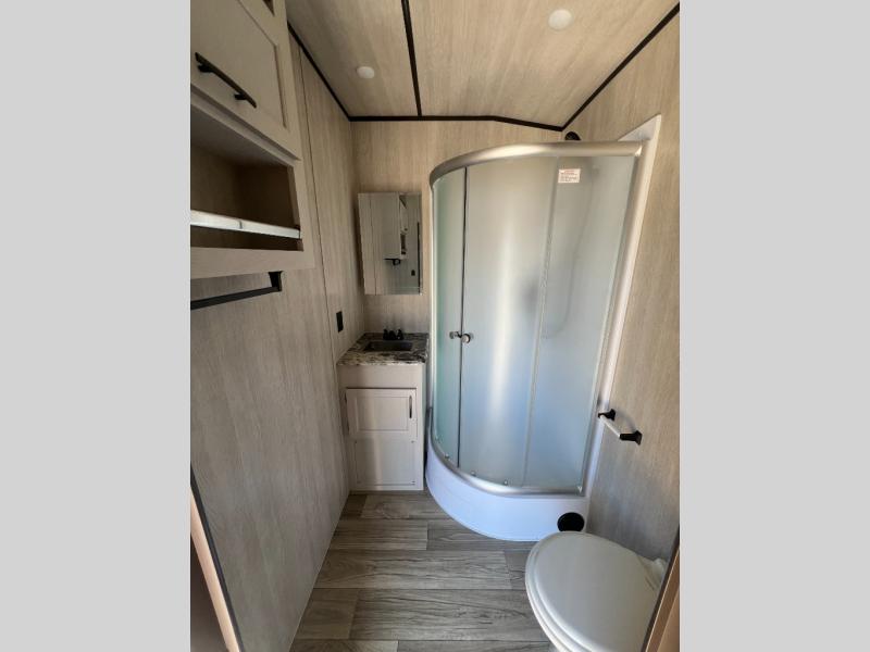 Toward the front, a private bedroom provides a quiet retreat with comfortable sleeping space and wardrobe storage, while the full bathroom offers the everyday convenience of a residential-style setup. With its durable wide-body design, impressive cargo capacity, and thoughtful amenities like a power awning and available fuel station for your toys, the R2515FSXL is built to support both adventure and relaxation. It’s a toy hauler that feels just as comfortable hosting friends at camp as it does hauling your gear to the next destination.