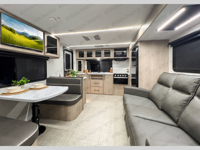 Single Slide Out – Expands the living space to include booth dinette and theater seating.