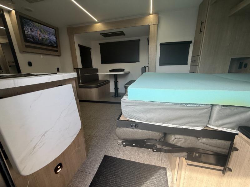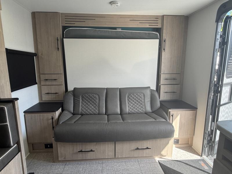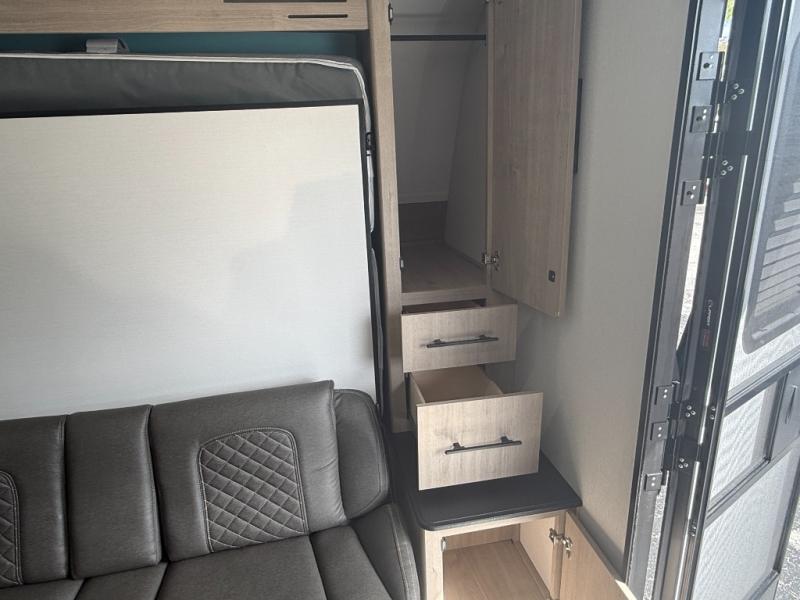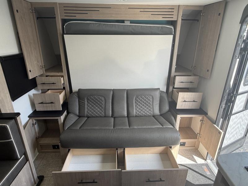One of the standout features of the 22BHE is its versatile interior layout. The front Murphy bed folds away during the day to reveal a comfortable sofa, instantly transforming the space from bedroom to living room.