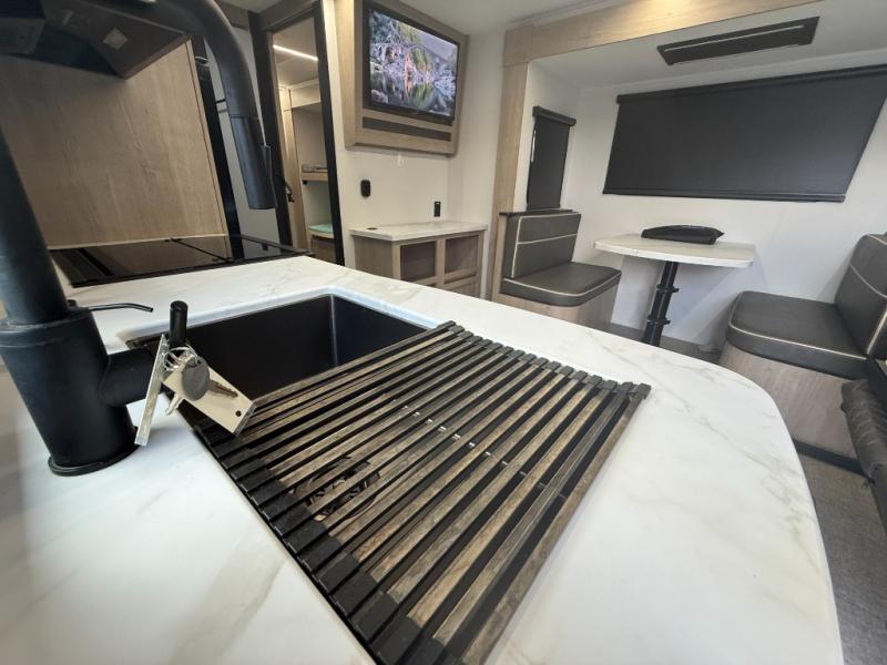 Despite its compact footprint, the Imagine XLS 22BHE features a functional kitchen that makes cooking on the road easy.