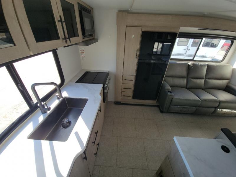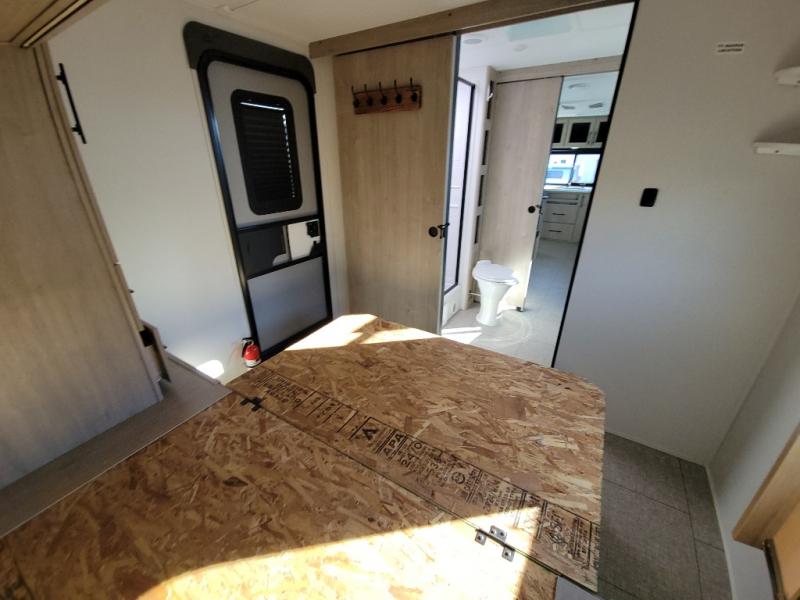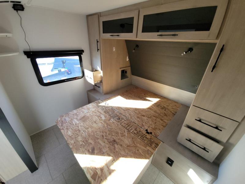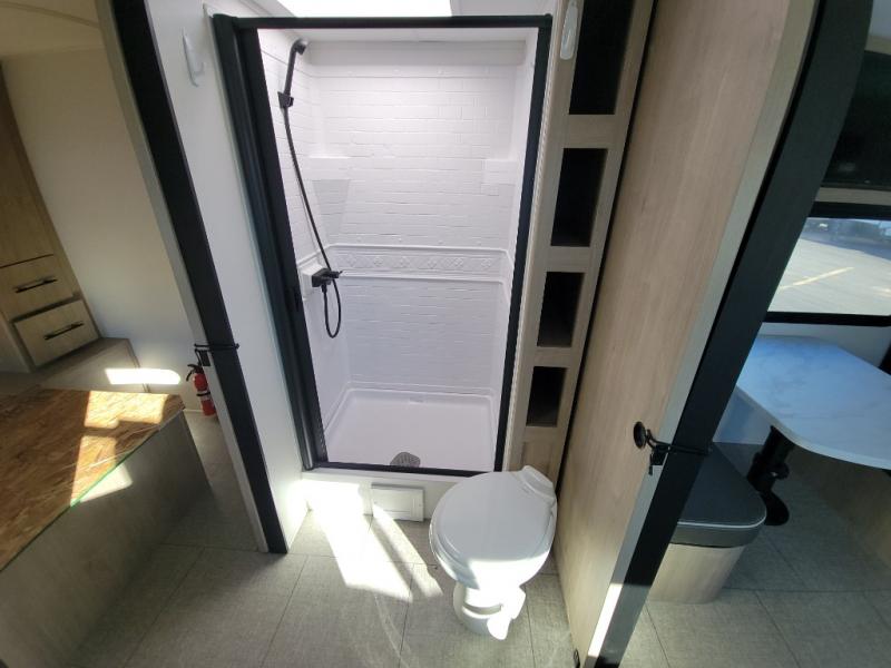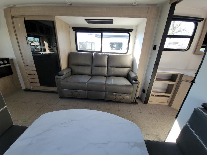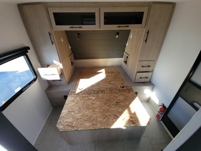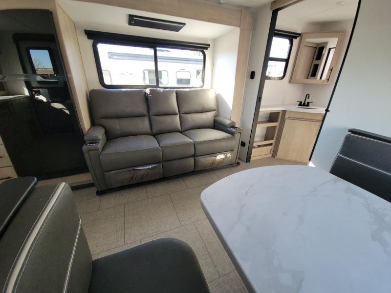 Treat yourself to a weekend of fun in this Imagine XLS travel trailer! Whether it's just you and your spouse, or you've chosen to bring along a group of friends, this trailer will meet the need. The front bedroom can sleep two people on the walk-around queen-size bed. The bedroom is quite functional because it not only contains the second exterior entry door, but it also has a private entrance into the walk-through bathroom since it is located on the other side of the bathroom. The booth dinette is functional too because it can transform from a dining location into a sleeping location, and the theater seating is directly across from the LED TV for easy viewing.