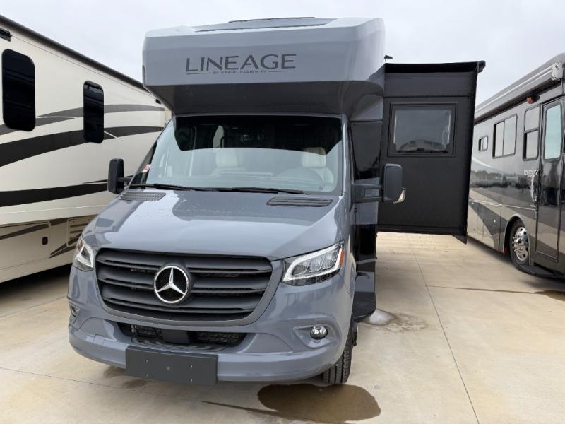 Grand Design's first motorized coach, the Lineage Series M is coming to you with luxurious features at a great value. This Class C diesel motorhome sits on a Mercedes-Benz sprinter chassis for quality and performance you can trust. True to Grand Design's foundation, the Lineage includes interior comforts, durable construction, innovative features, and attention to detail. The Series M Package includes natural teak wood grain, a Lineage Suspension Package, and more. There is also a Blackout Package with black aluminum wheels, a Chromeout Package with chrome aluminum wheels, plus additional packages to enhance your travel experience!