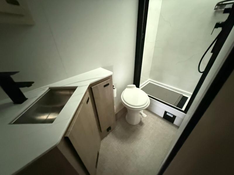 Head to your local state park or across the states in this spacious coach. Once you arrive at your destination, you can prepare a meal with the full kitchen amenities, including a cooktop, microwave oven, and a refrigerator. The power theater seating provides a place to relax, or you can choose the optional booth dinette if you need additional sleeping space. A full bath will let you clean up after a day outdoors, and the 70" x 80" king bed within the full-wall slide is sure to bring comfort. This model also includes a pantry beside the theater seats for snacks and a bedroom wardrobe to keep your clothes wrinkle-free!