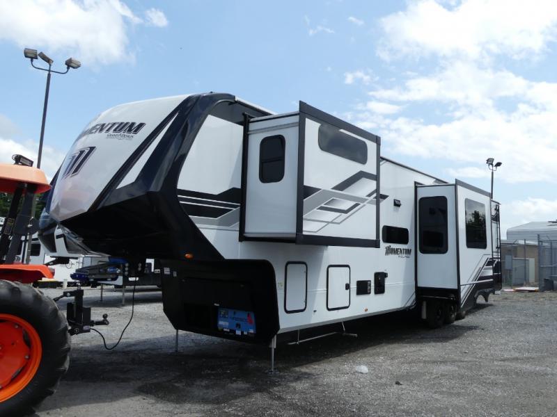 Grand Design Momentum M-Class 414M toy hauler fifth wheel highlights: