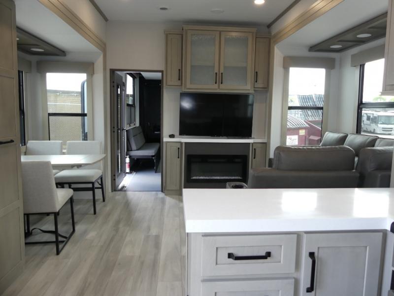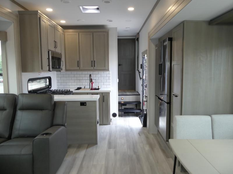 With any Momentum M-Class toy hauler by Grand Design, you will enjoy luxury at every turn! They have been constructed to a superior standard with a thermal roof design, triple insulated main floor and garage floor, and a Rail-Tite underbelly seal that will allow you to camp in all elements. Each model also features a, 8' 5" wide body chassis with a wide rail design, no wheel wheels, and a dovetail entry for easier loading. The Stealth A/C system provides maximum cooling power, and the CRE3000 suspension system means you can enjoy a smooth tow each time. You will love the luxurious interior with a professional grade stainless steel cooktop, interior color changing LED accent lighting, a fiberglass shower with a glass door, and solid surface countertops.