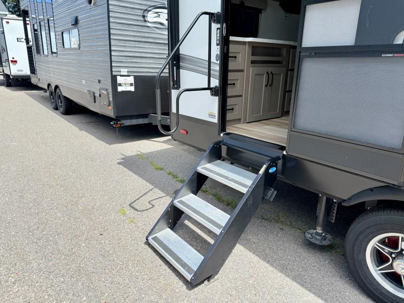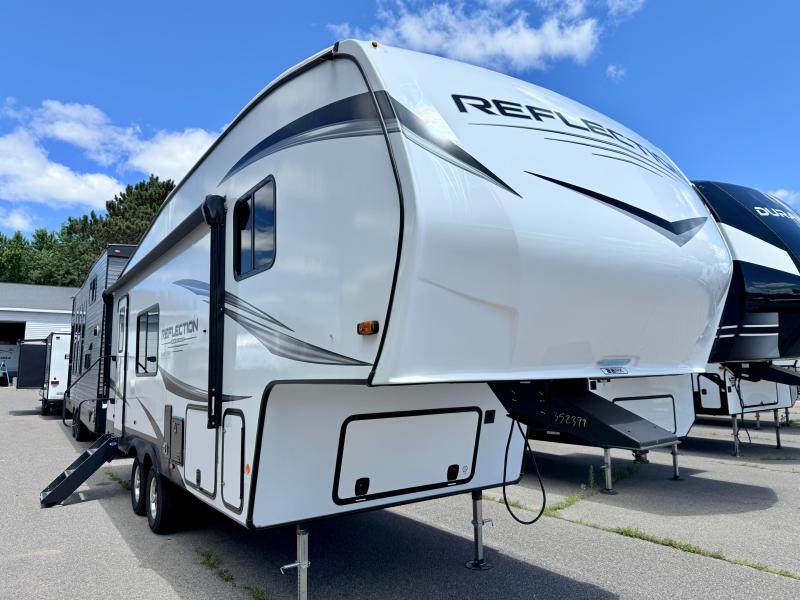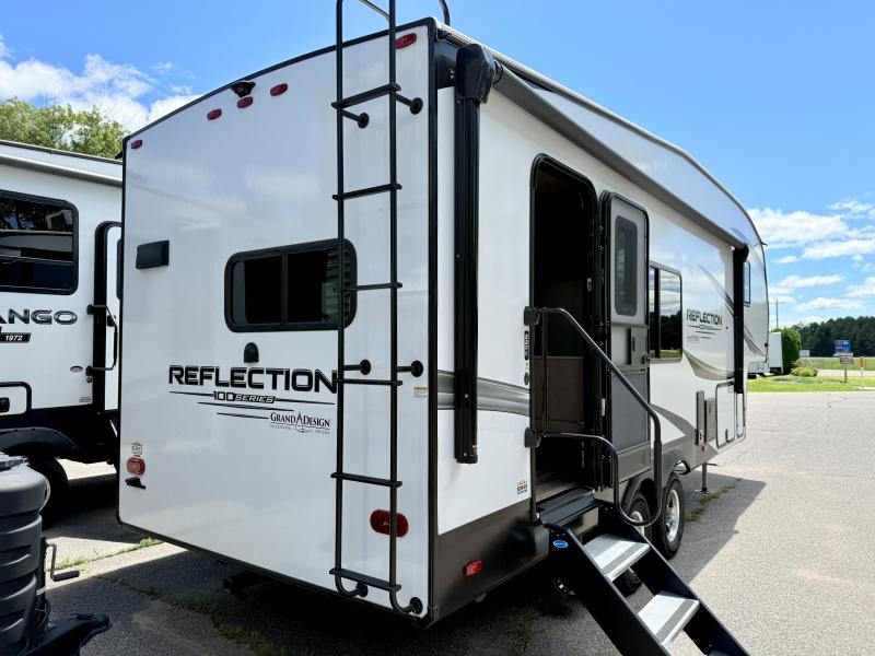 Each Reflection 100 Series fifth wheel by Grand Design is affordable and packed with luxury for unforgettable camping memories! The MorRyde CRE3000 suspension system and Goodyear Endurance tires will provide smooth towing from home to campground. And the solar package with a 180W solar panel, 60 Amp charge controller and 12V refrigerator will allow you to camp for longer periods of time and in more locations! A heated and enclosed underbelly with circulating heat is included in the Arctic 4-Seasons Protection Package, along with a double insulated roof and front cap, and thermofoil insulation under the holding tanks so you can camp all year long if you choose. You will appreciate having an on-demand water heater for hot showers after exploring, and the universal all-in-one docking station will let you monitor your RVs tanks levels and functions with ease. These models also include many luxurious interior features, such as premium Congoleum flooring, pleated shades, residential cabinetry, and matte black fixtures and hardware. Don't let the Reflection 100 Series fifth wheels pass you by!