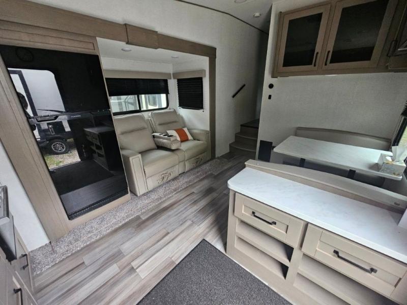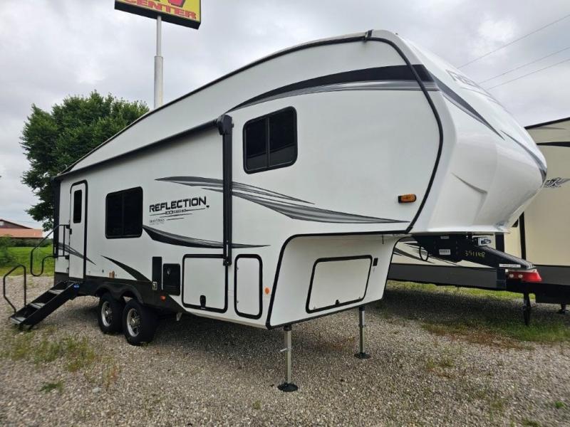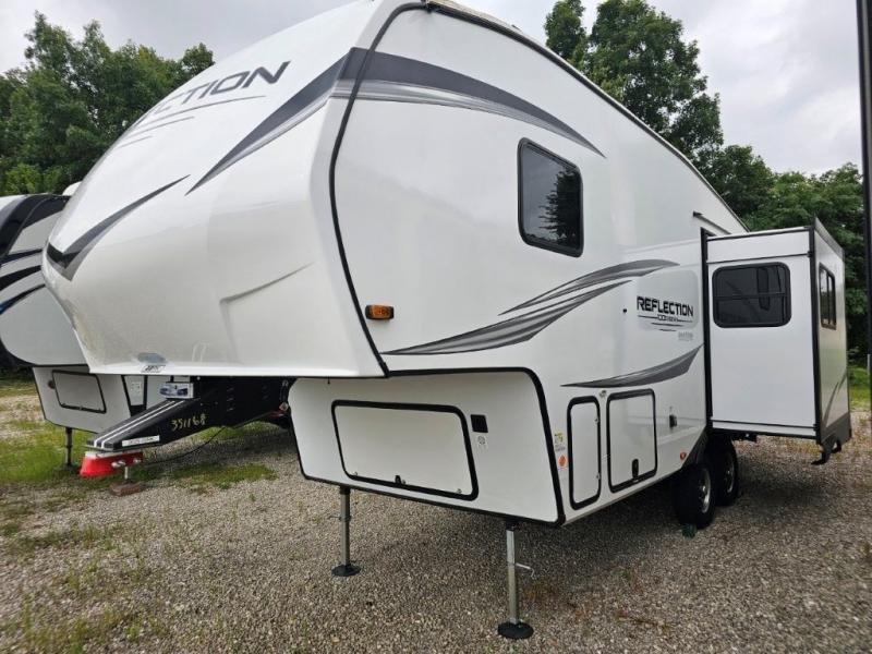 Each Reflection 100 Series fifth wheel by Grand Design is affordable and packed with luxury for unforgettable camping memories! The MorRyde CRE3000 suspension system and Goodyear Endurance tires will provide smooth towing from home to campground. And the solar package with a 180W solar panel, 60 Amp charge controller and 12V refrigerator will allow you to camp for longer periods of time and in more locations! A heated and enclosed underbelly with circulating heat is included in the Arctic 4-Seasons Protection Package, along with a double insulated roof and front cap, and thermofoil insulation under the holding tanks so you can camp all year long if you choose. You will appreciate having an on-demand water heater for hot showers after exploring, and the universal all-in-one docking station will let you monitor your RVs tanks levels and functions with ease. These models also include many luxurious interior features, such as premium Congoleum flooring, pleated shades, residential cabinetry, and matte black fixtures and hardware. Don't let the Reflection 100 Series fifth wheels pass you by!