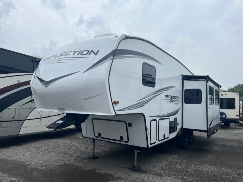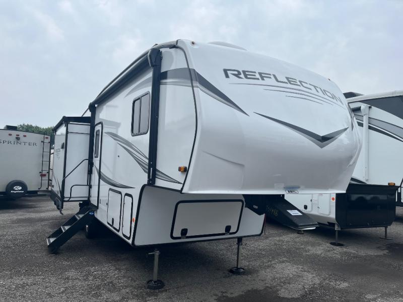Each Reflection 100 Series fifth wheel by Grand Design is affordable and packed with luxury for unforgettable camping memories! The MorRyde CRE3000 suspension system and Goodyear Endurance tires will provide smooth towing from home to campground. And the solar package with a 180W solar panel, 60 Amp charge controller and 12V refrigerator will allow you to camp for longer periods of time and in more locations! A heated and enclosed underbelly with circulating heat is included in the Arctic 4-Seasons Protection Package, along with a double insulated roof and front cap, and thermofoil insulation under the holding tanks so you can camp all year long if you choose. You will appreciate having an on-demand water heater for hot showers after exploring, and the universal all-in-one docking station will let you monitor your RVs tanks levels and functions with ease. These models also include many luxurious interior features, such as premium Congoleum flooring, pleated shades, residential cabinetry, and matte black fixtures and hardware. Don't let the Reflection 100 Series fifth wheels pass you by!