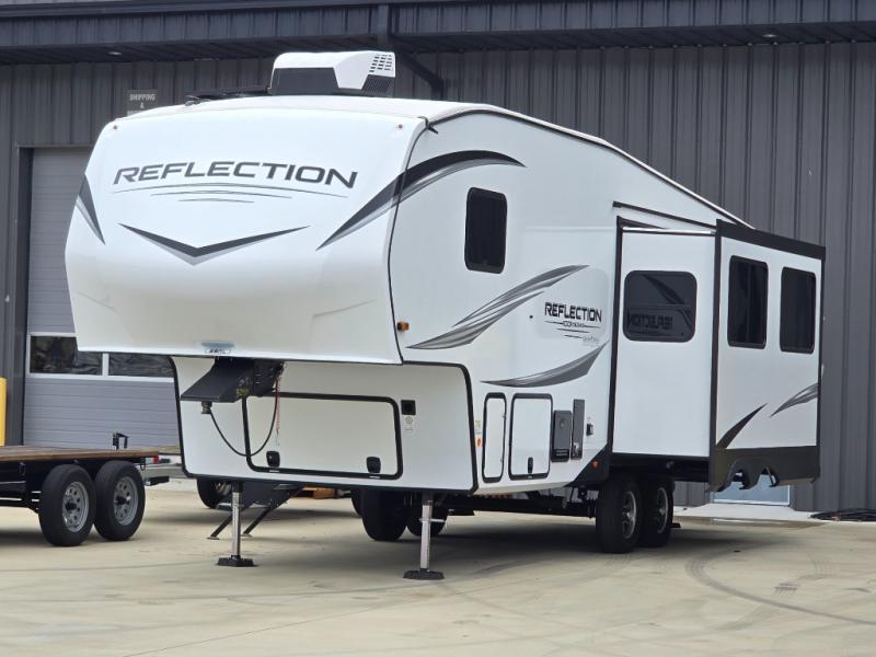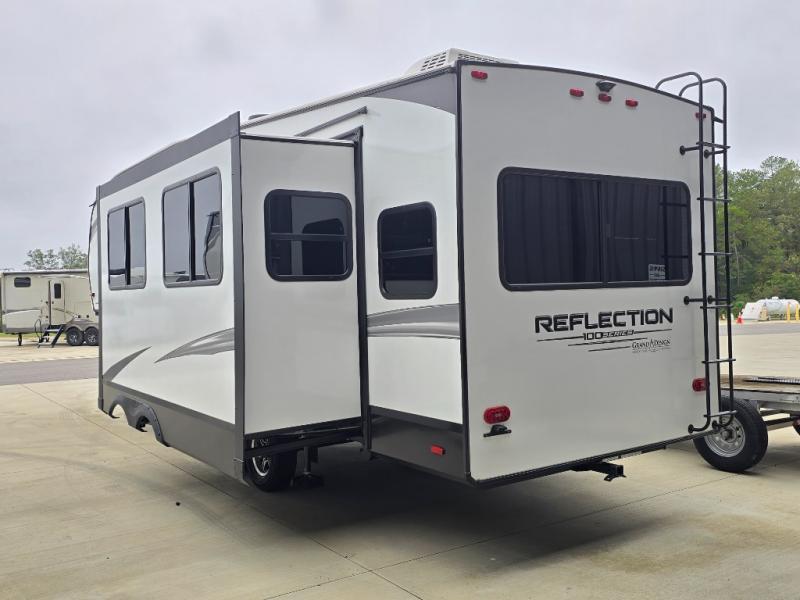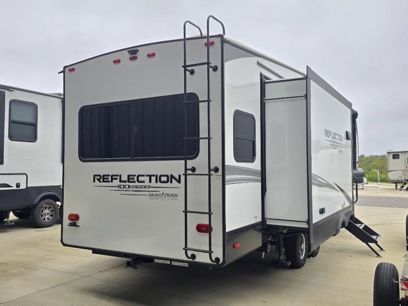 Each Reflection 100 Series fifth wheel by Grand Design is affordable and packed with luxury for unforgettable camping memories! The MorRyde CRE3000 suspension system and Goodyear Endurance tires will provide smooth towing from home to campground. And the solar package with a 180W solar panel, 60 Amp charge controller and 12V refrigerator will allow you to camp for longer periods of time and in more locations! A heated and enclosed underbelly with circulating heat is included in the Arctic 4-Seasons Protection Package, along with a double insulated roof and front cap, and thermofoil insulation under the holding tanks so you can camp all year long if you choose. You will appreciate having an on-demand water heater for hot showers after exploring, and the universal all-in-one docking station will let you monitor your RVs tanks levels and functions with ease. These models also include many luxurious interior features, such as premium Congoleum flooring, pleated shades, residential cabinetry, and matte black fixtures and hardware. Don't let the Reflection 100 Series fifth wheels pass you by!