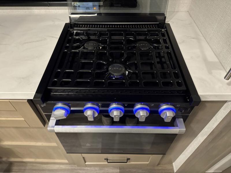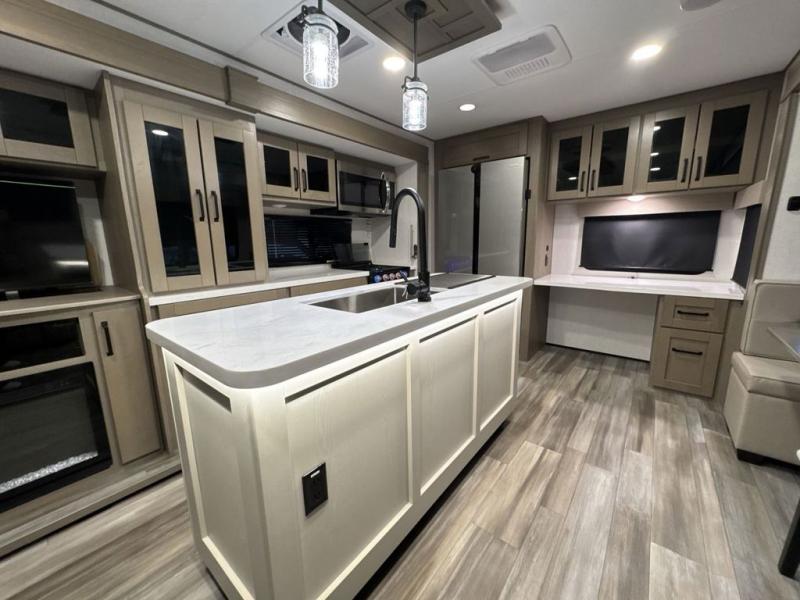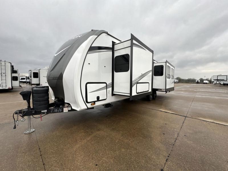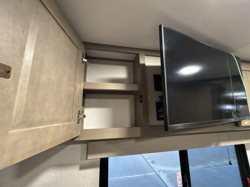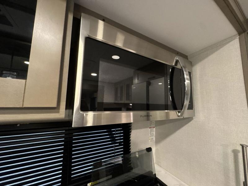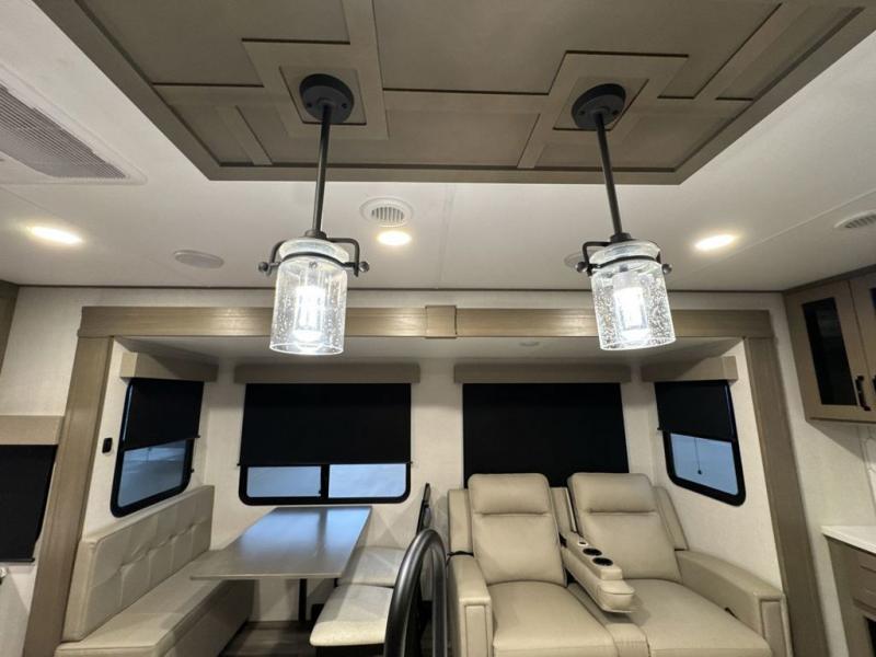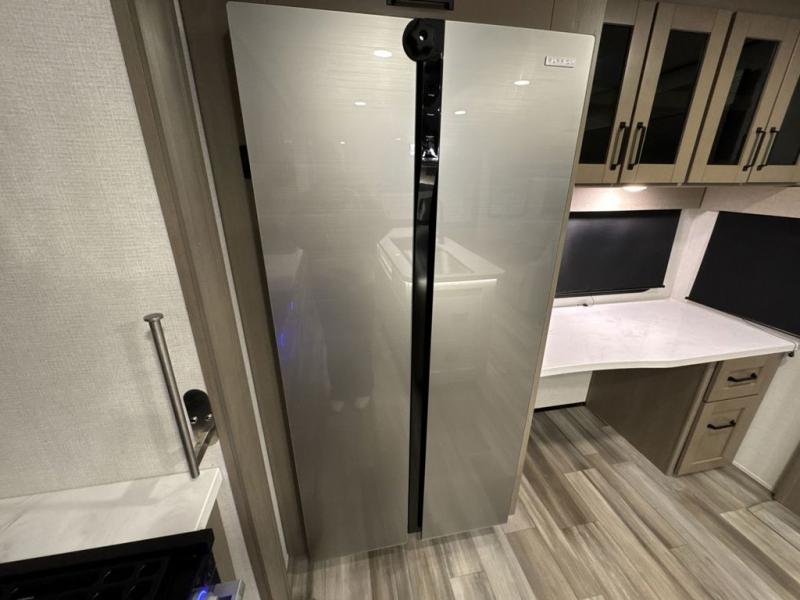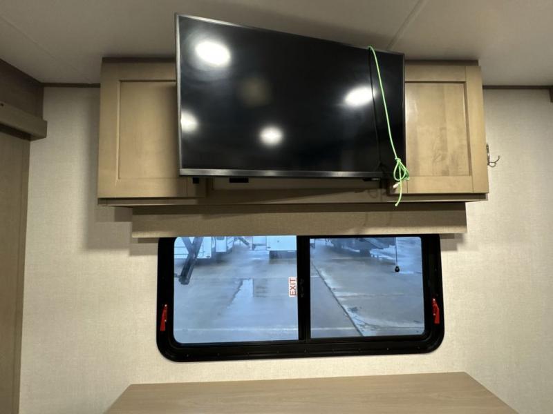 Enjoy a home away from home with this travel trailer! The chef will enjoy cooking either indoors in the rear kitchen with the kitchen island, hutch, and three burner cooktop, or outdoors with the outside griddle and outside 1.6 cu. ft. refrigerator to drink a cold beverage while grilling burgers. If mother nature rains on your parade then you can head indoors and either play games at the booth dinette or relax on the theater seating across from the entertainment center with a 40" TV and fireplace. Rinse the sand out of your hair in the full bathroom with the 30" x 36" shower then head to the front private bedroom and lay down on the queen bed slide which can be replace for an optional king bed.