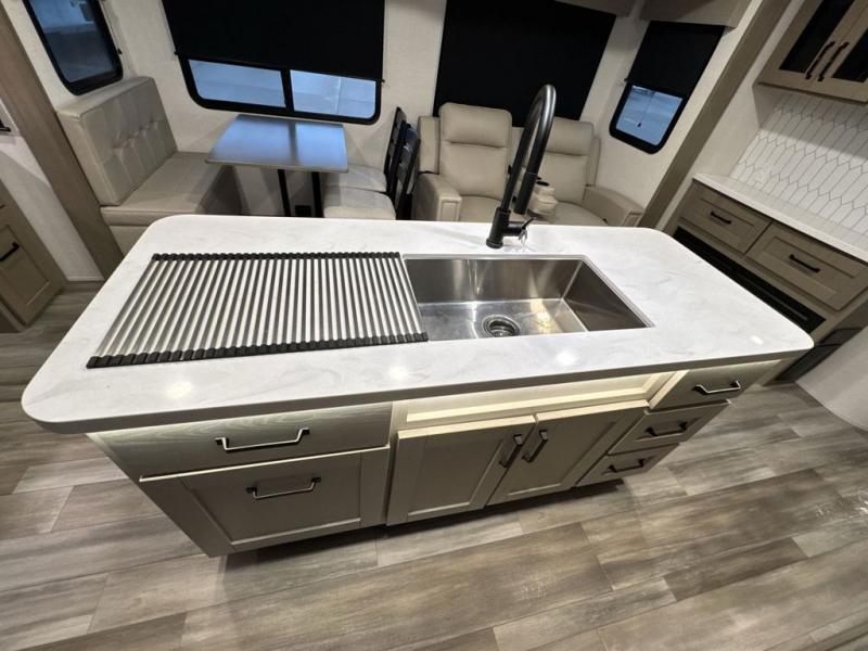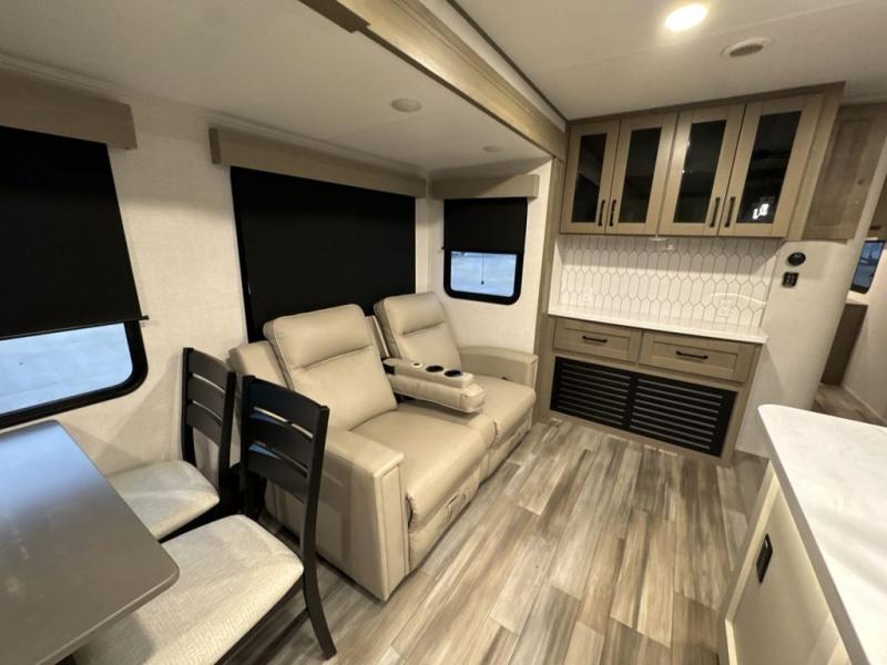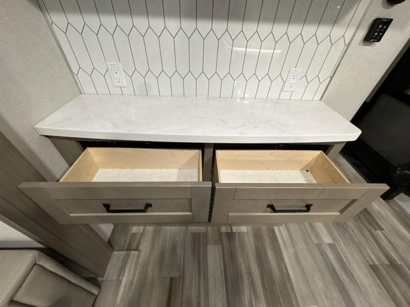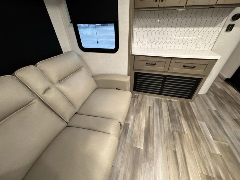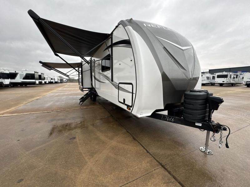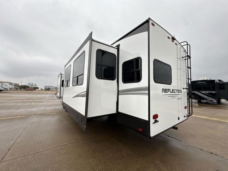 With any Reflection travel trailer by Grand Design, you will have a solar panel for off-grid camping and a 60 amp charge controller and inverter prep, a Universal All-In-One docking station, unobstructed pass-through storage, and Goodyear Endurance tires. Each is constructed of gel coat exterior sidewalls, residential 5" truss rafters, walk-on roof decking, a fiberglass and radiant foil roof and front cap insulation plus laminated aluminum framed side walls, roof and end walls in slide rooms. Head inside to enjoy residential hardwood cabinet doors, premium Congoleum flooring, a spacious shower with a glass door, and many more comforts!