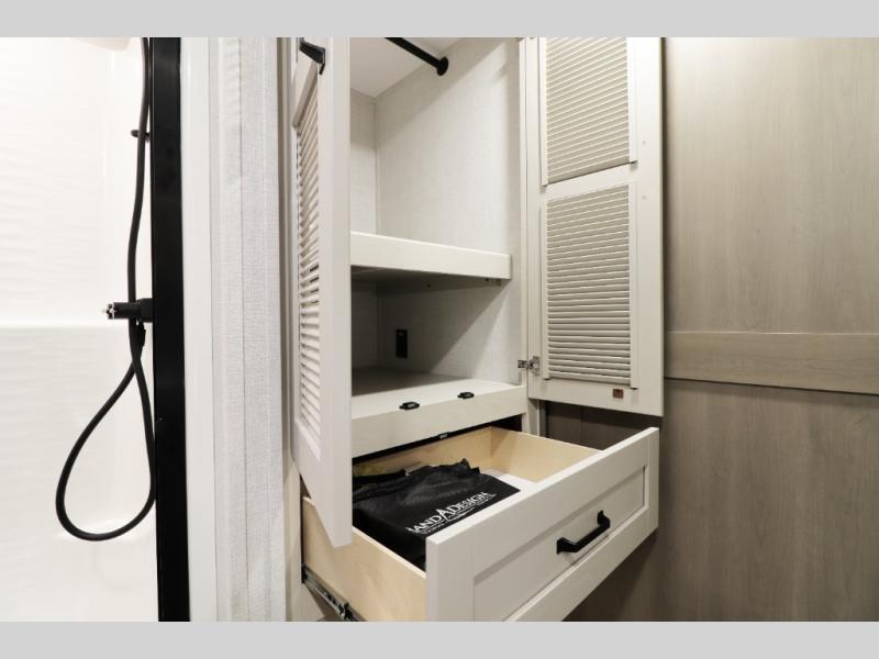 Modern RV buyers want connectivity and energy efficiency, and the Reflection delivers. Many models include factory solar prep or solar packages with roof-mounted panels, charge controller, inverter prep, and 12V refrigerator for extended off-grid capability. Entertainment and technology features may include Bluetooth/HDMI stereo system, LED TV, Compass Connect monitoring, Tire Linc TPMS, and wiring for additional A/C or upgrades—making travel smarter, safer, and more connected.