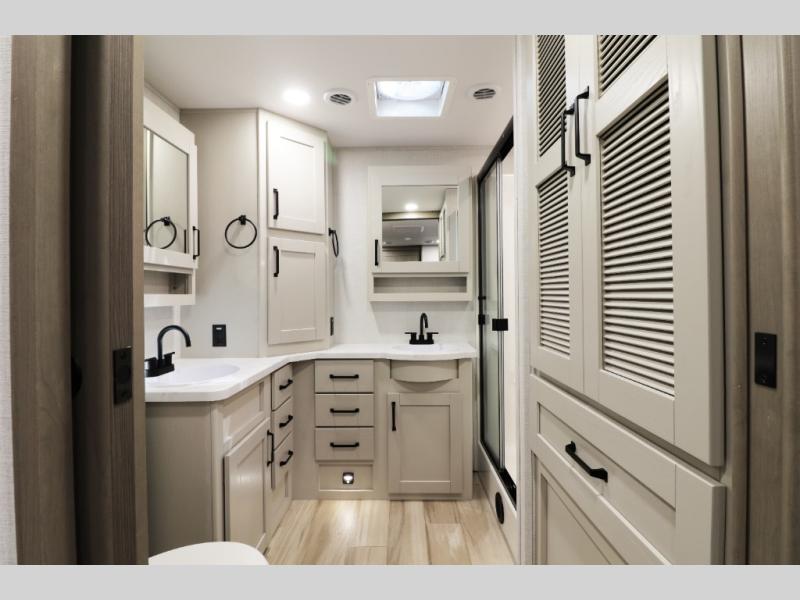 This luxury travel trailer is engineered for comfort and performance with a strong balance of towability and spacious living. At approximately 35' 9" in length with dual slides, the 322FKTS provides a wide open interior while maintaining manageable towing characteristics. Large tank capacities, efficient climate control, and residential-grade appliances allow you to stay off-grid longer and travel with confidence wherever the road takes you.