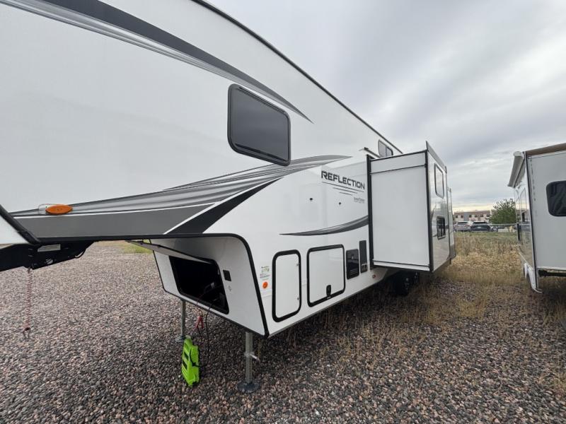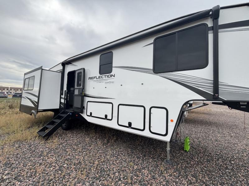 With any Reflection fifth wheel by Grand Design, you will have a solar panel for off-grid camping and a 60 amp charge controller and inverter prep, a Universal All-In-One docking station, unobstructed pass-through storage, and Goodyear Endurance tires. Each is constructed of gel coat exterior sidewalls, residential 5" truss rafters, walk-on roof decking, a fiberglass and radiant foil roof and front cap insulation plus laminated aluminum framed side walls, roof and end walls in slide rooms. Head inside to enjoy residential hardwood cabinet doors, premium Congoleum flooring, a spacious shower with a glass door, and many more comforts!