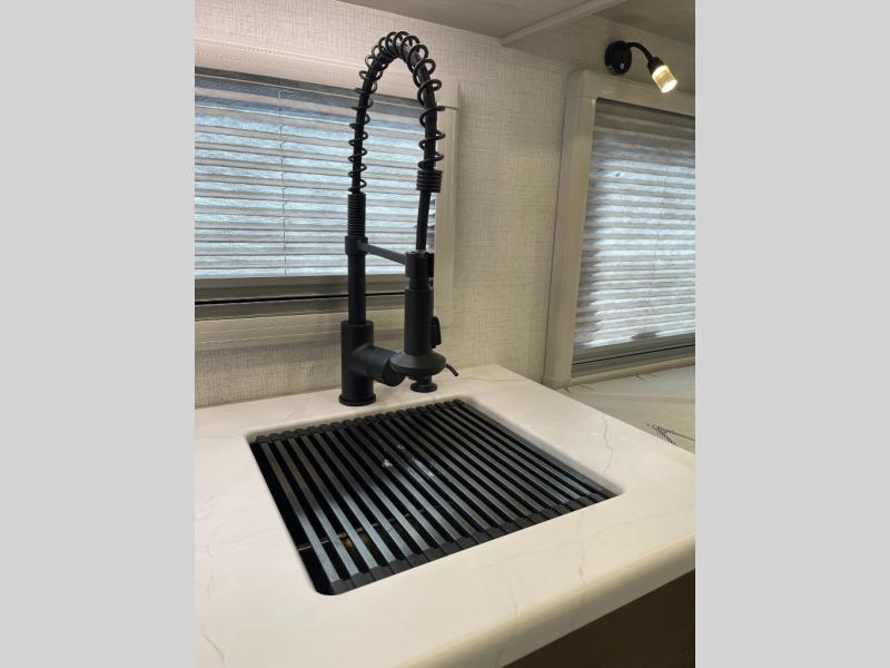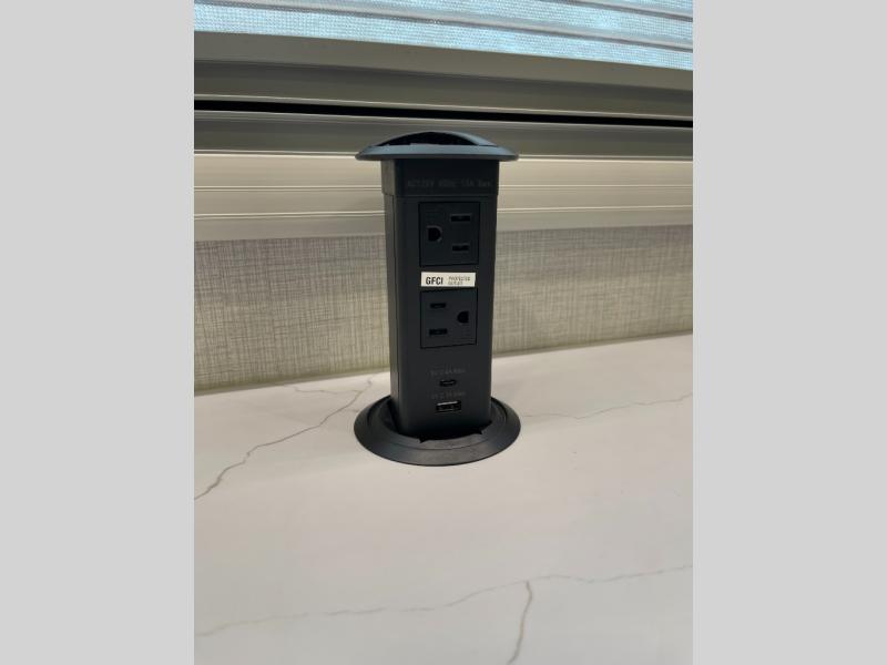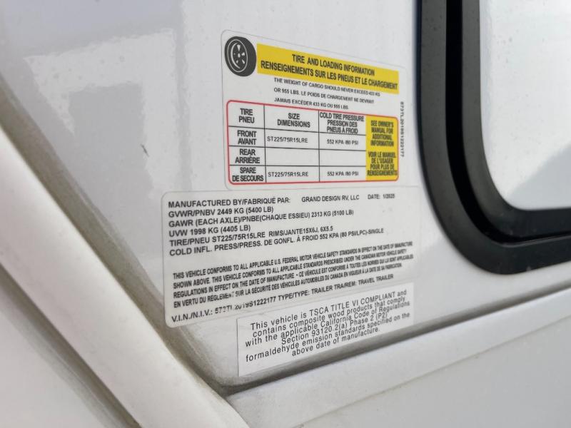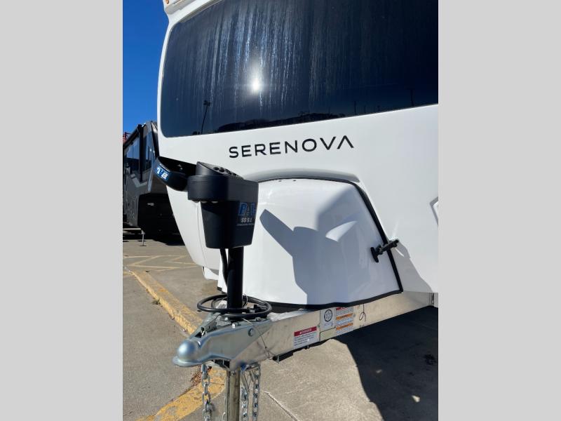 With any Serenova travel trailer by Grand Design, you will enjoy a smooth tow and at-home comforts wherever you decide to roam. There is a MORryde independent suspension plus MORryde shock, Goodyear Endurance tires, and Dexter tow assist with an anti-lock braking system and sway control for optimal handling. To help extend your camping season, there is an enclosed underbelly, a dedicated heat source with Thermafoil, heated dump valves plus thermostatically controlled 12V heating pads. Inside, you'll love the look of the imported Italian cabinetry, and there is a Klipsch whole home Bluetooth speaker so you can listen to your favorite tunes at the campground!