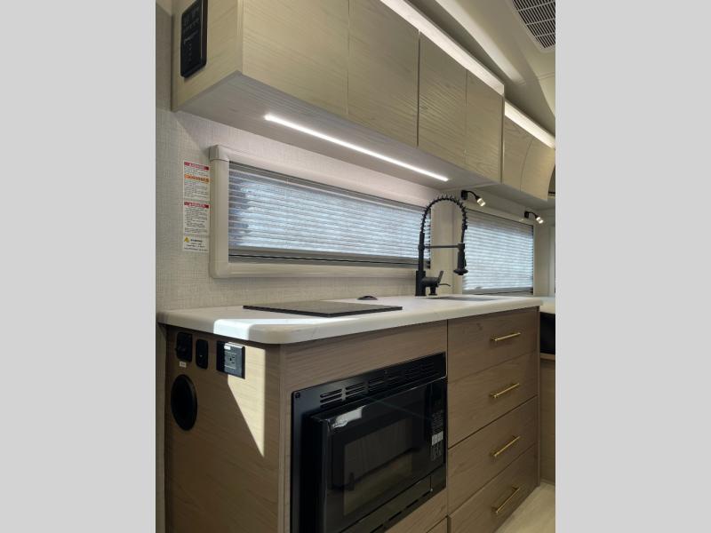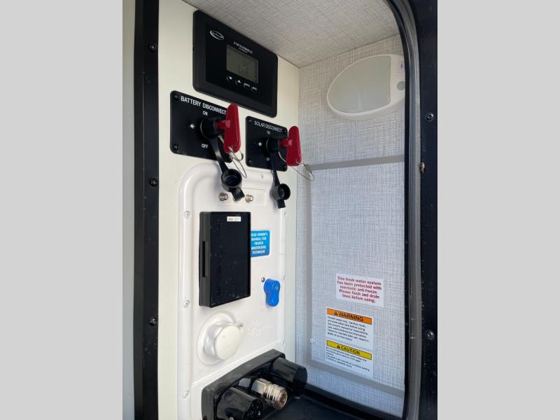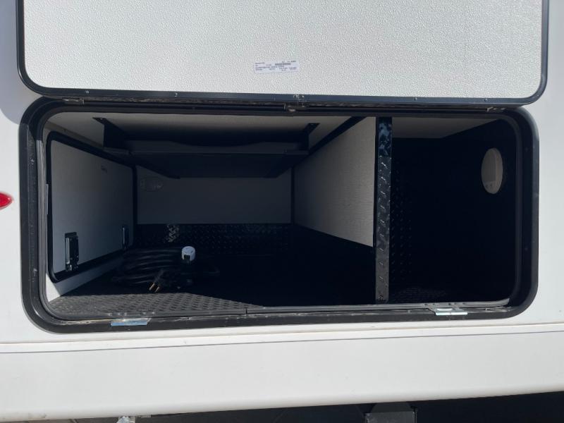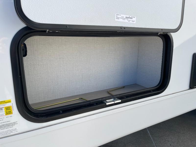 Trips to the lake are made complete in this cozy travel trailer for four. Once you arrive at the campground, you can unload the exterior storage, then start lunch on the induction cooktop and convection microwave. There is a front U-shaped sleeper dinette that will provide dining space and additional sleeping space for guests. This unit includes a private full bath with a shower, toilet, and flip-up bath sink plus some convenient storage for your necessities. You're sure to enjoy sleeping on the rear queen bed that includes wraparound overhead storage for your things!