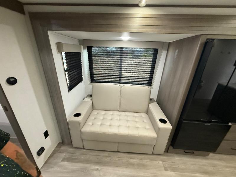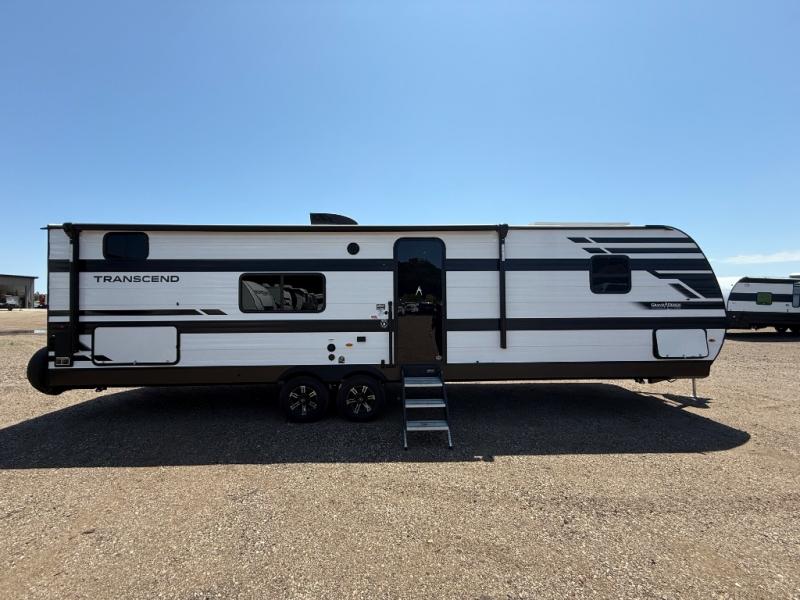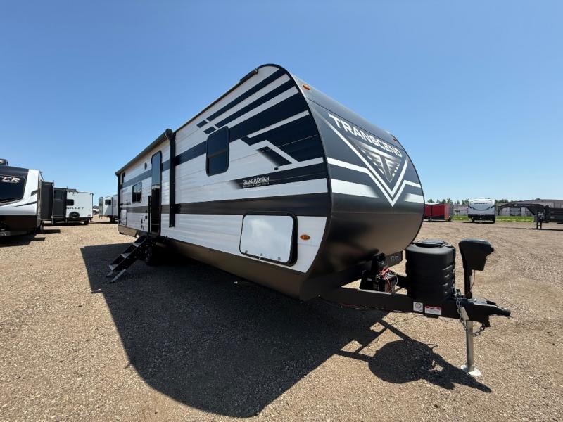 With any Transcend travel trailer by Grand Design, you will enjoy upscale appointments and convenient amenities to make each camping experience one to remember! The Quad Seal technology, residential insulated walls, plus heated and enclosed underbelly with suspended tanks make these units solid and durable. There is a black automotive glass door outside, along with a Safe-T-Rail assist on the main entry door, backup camera prep, and a universal docking station. JBL interior and exterior speakers plus a JBL head unit will let you listen to your favorite tunes as you visit under the power awning with LED strip lights. Inside, you'll enjoy multiple outlets to keep your gadgets charged, thermoformed and seamless countertops, and a 6' 6" interior height so you won't feel closed in. The Solar Prep Package will allow you to enjoy off-grid capabilities with a 200W solar panel, which is wired for up to 600W, a 30 AMP Bluetooth solar controller, a 2000W inverter prep, and more!