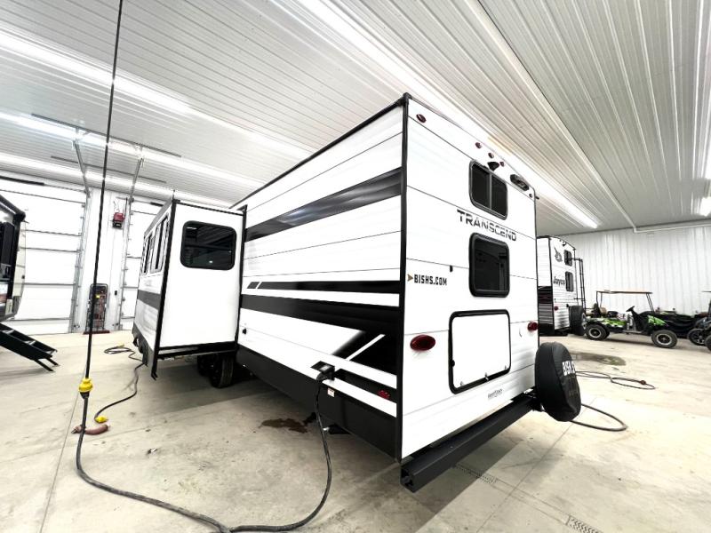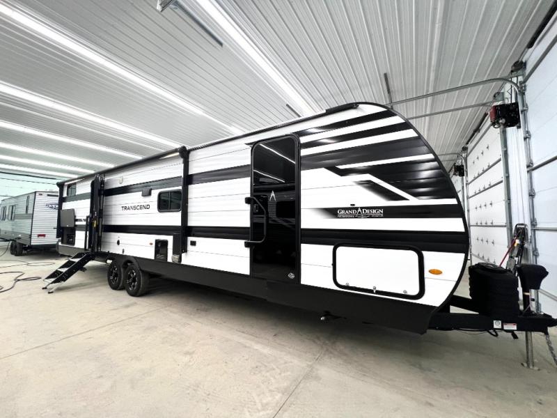 With any Transcend travel trailer by Grand Design, you will enjoy upscale appointments and convenient amenities to make each camping experience one to remember! The Quad Seal technology, residential insulated walls, plus heated and enclosed underbelly with suspended tanks make these units solid and durable. There is a black automotive glass door outside, along with a Safe-T-Rail assist on the main entry door, backup camera prep, and a universal docking station. JBL interior and exterior speakers plus a JBL head unit will let you listen to your favorite tunes as you visit under the power awning with LED strip lights. Inside, you'll enjoy multiple outlets to keep your gadgets charged, thermoformed and seamless countertops, and a 6' 6" interior height so you won't feel closed in. The Solar Prep Package will allow you to enjoy off-grid capabilities with a 200W solar panel, which is wired for up to 600W, a 30 AMP Bluetooth solar controller, a 2000W inverter prep, and more!