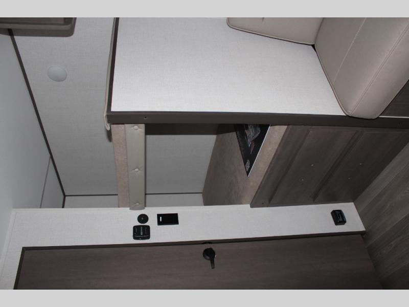 With any Transcend One travel trailer by Grand Design, you will enjoy lightweight towing thanks to their single-axle. There are many interior comforts to make camping easier than ever, such as recessed lighting, residential countertops, and a 6' 6" interior height. Each model is constructed with a heated and enclosed underbelly with suspended tanks, a moisture barrier floor enclosure, and Thermofoil over the roof and front cap for added protection. And a JBL sound system will let you listen to tunes as you visit under the power awning with a Fusion light!