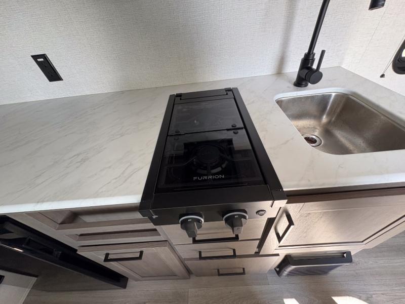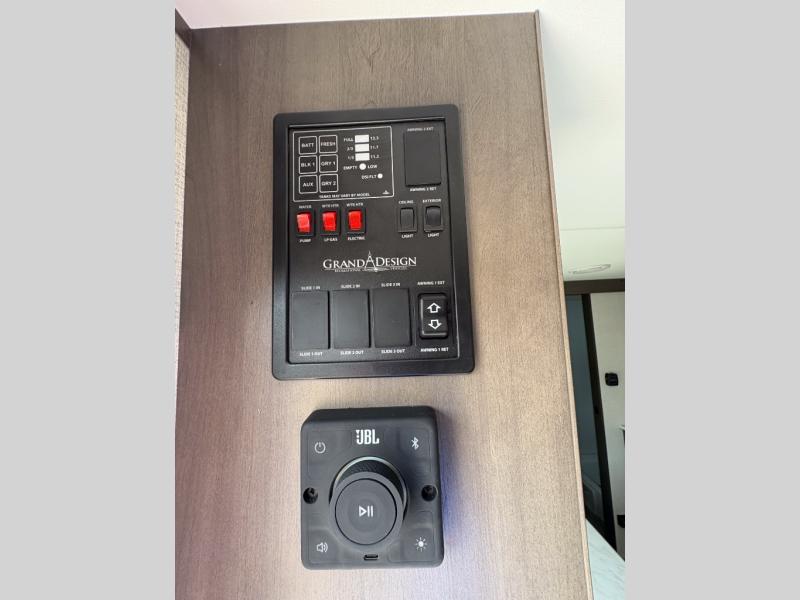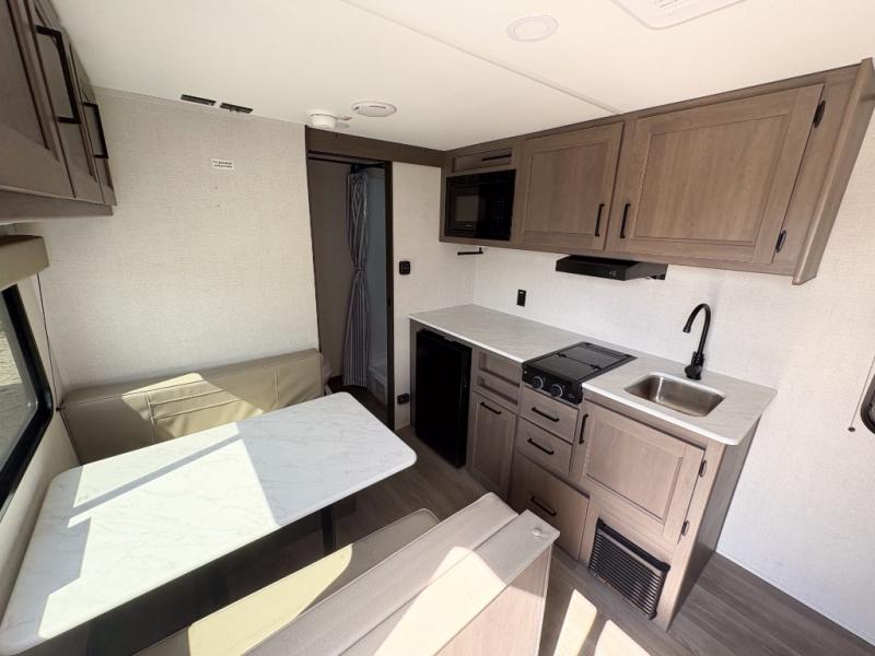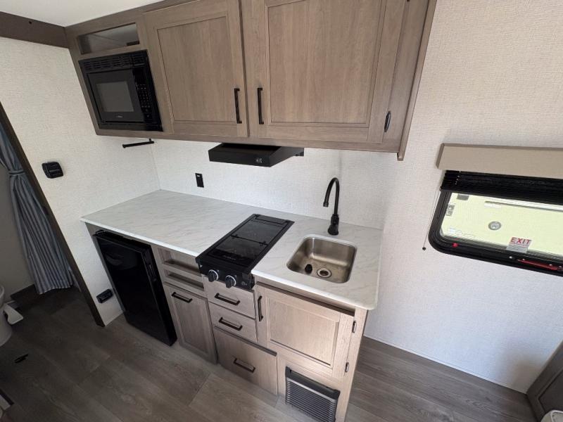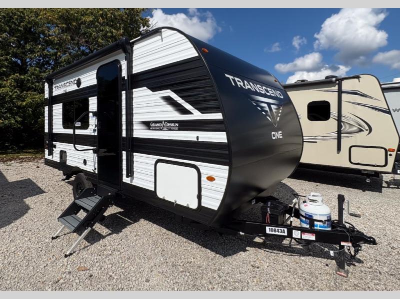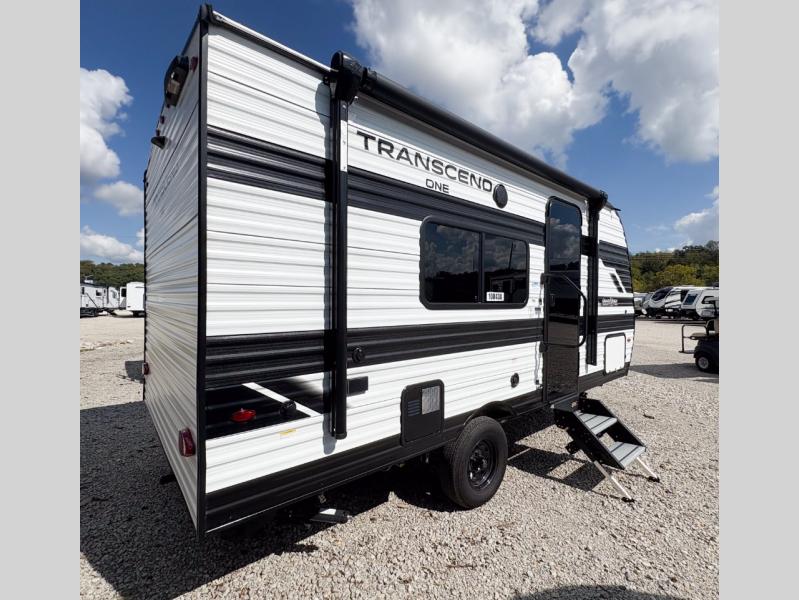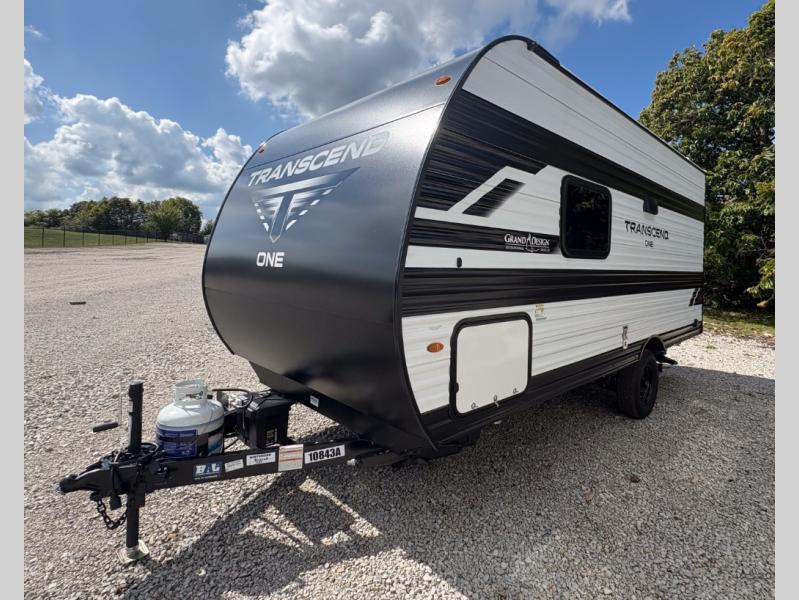 With any Transcend One travel trailer by Grand Design, you will enjoy lightweight towing thanks to their single-axle. There are many interior comforts to make camping easier than ever, such as recessed lighting, residential countertops, and a 6' 6" interior height. Each model is constructed with a heated and enclosed underbelly with suspended tanks, a moisture barrier floor enclosure, and Thermofoil over the roof and front cap for added protection. And a JBL sound system will let you listen to tunes as you visit under the power awning with a Fusion light!