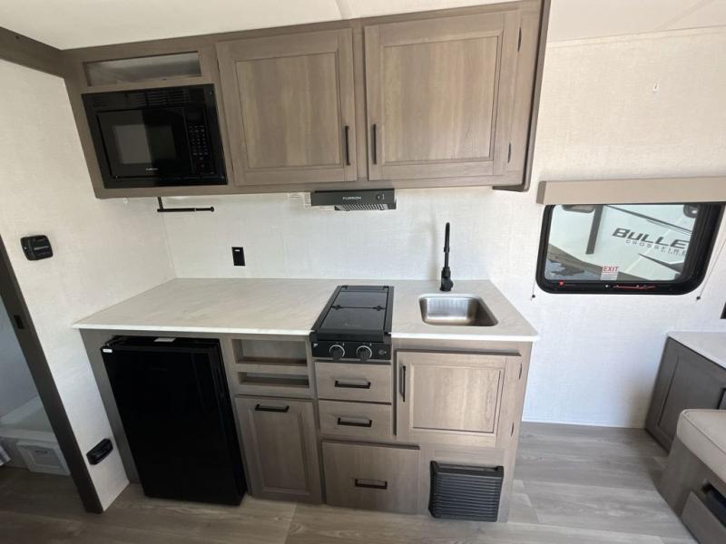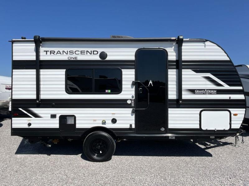With any Transcend One travel trailer by Grand Design, you will enjoy lightweight towing thanks to their single-axle. There are many interior comforts to make camping easier than ever, such as recessed lighting, residential countertops, and a 6' 6" interior height. Each model is constructed with a heated and enclosed underbelly with suspended tanks, a moisture barrier floor enclosure, and Thermofoil over the roof and front cap for added protection. And a JBL sound system will let you listen to tunes as you visit under the power awning with a Fusion light!