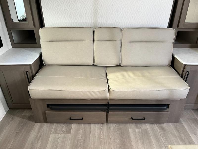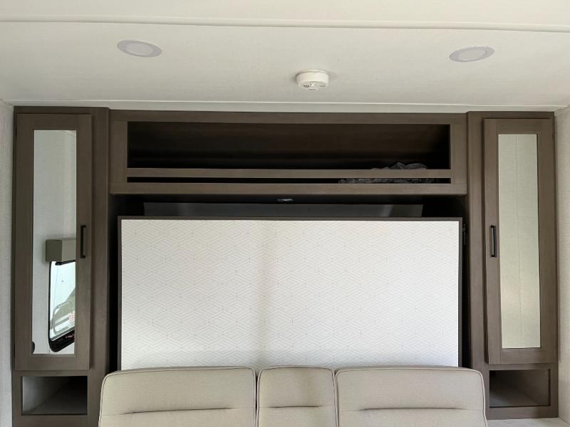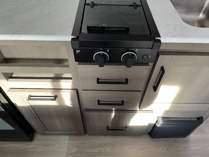 The kitchen in the Transcend One 151RB is engineered for practical, on-the-road cooking. You’ll find a cooktop, microwave, refrigerator, sink, and plenty of storage cabinets — everything you need to prepare tasty breakfasts, hearty dinners, or quick snacks after a day of exploring. Its smart layout and ample counter space make meal prep functional and enjoyable.
