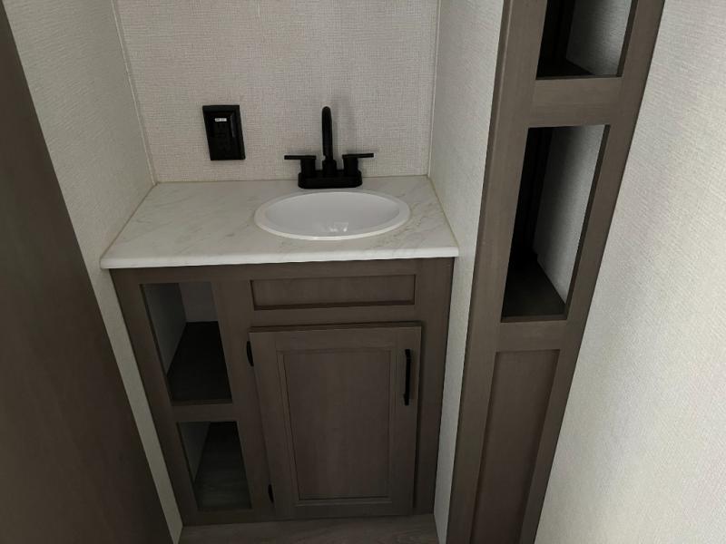 No need to rely on noisy or crowded campground facilities. The full bathroom in the 151RB includes a shower, toilet, and vanity, giving you privacy and convenience wherever your travels take you. It’s designed to make daily routines easy and comfortable.