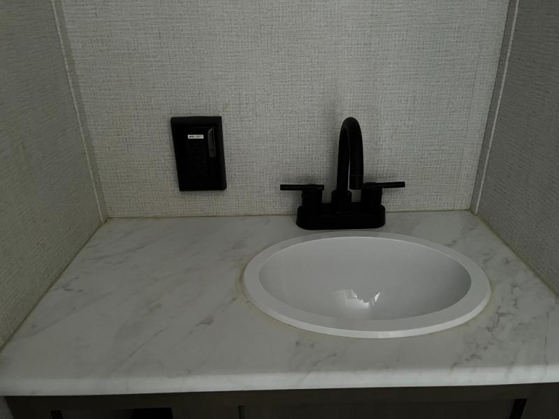 Shower, toilet, and vanity add privacy and everyday ease during your travels.