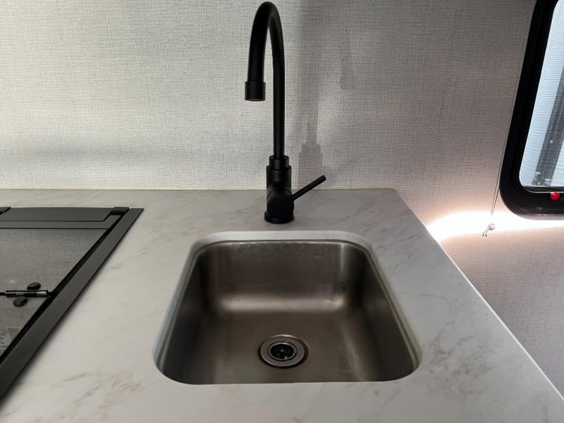 The rear bedroom offers a private and comfortable sleeping area with a quality mattress and convenient storage solutions. The design gives you a peaceful place to recharge after busy days of hiking, sightseeing, or socializing around the campfire.