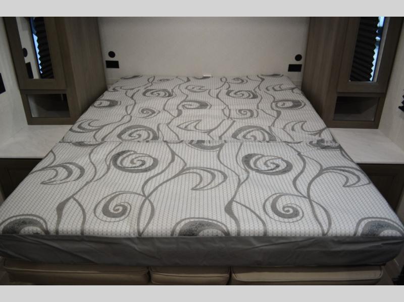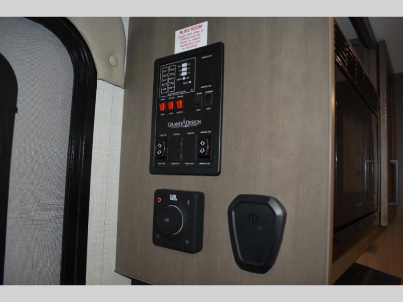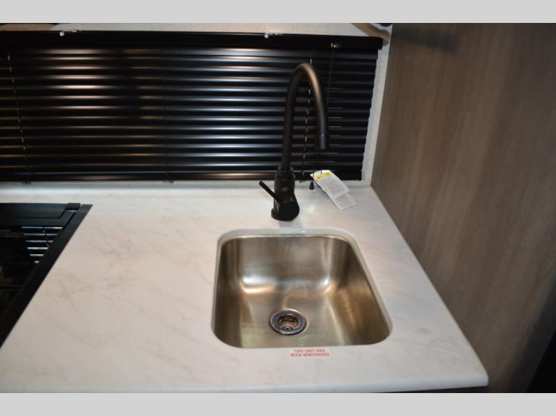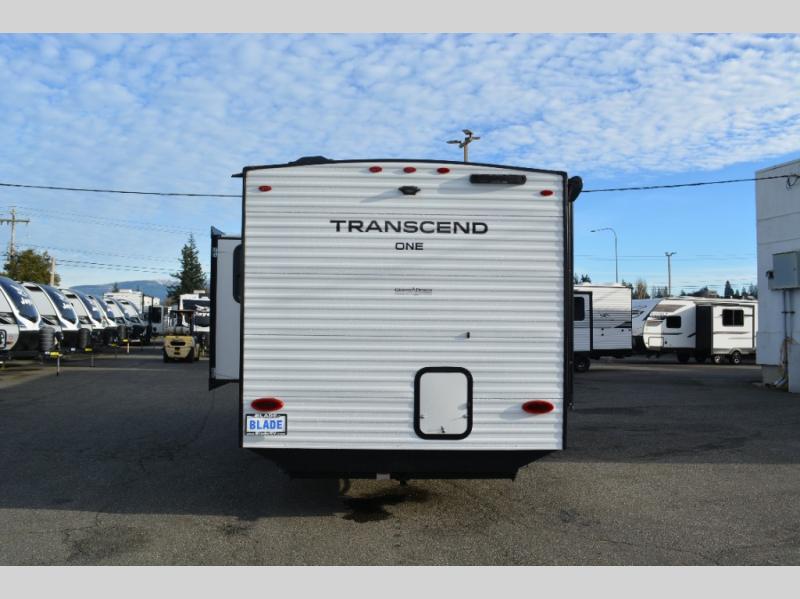 With any Transcend One travel trailer by Grand Design, you will enjoy lightweight towing thanks to their single-axle. There are many interior comforts to make camping easier than ever, such as recessed lighting, residential countertops, and a 6' 6" interior height. Each model is constructed with a heated and enclosed underbelly with suspended tanks, a moisture barrier floor enclosure, and Thermofoil over the roof and front cap for added protection. And a JBL sound system will let you listen to tunes as you visit under the power awning with a Fusion light!