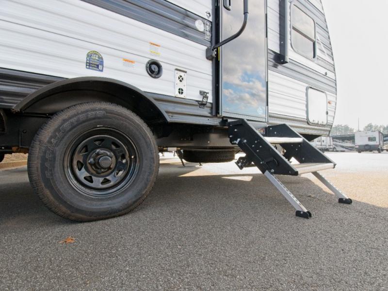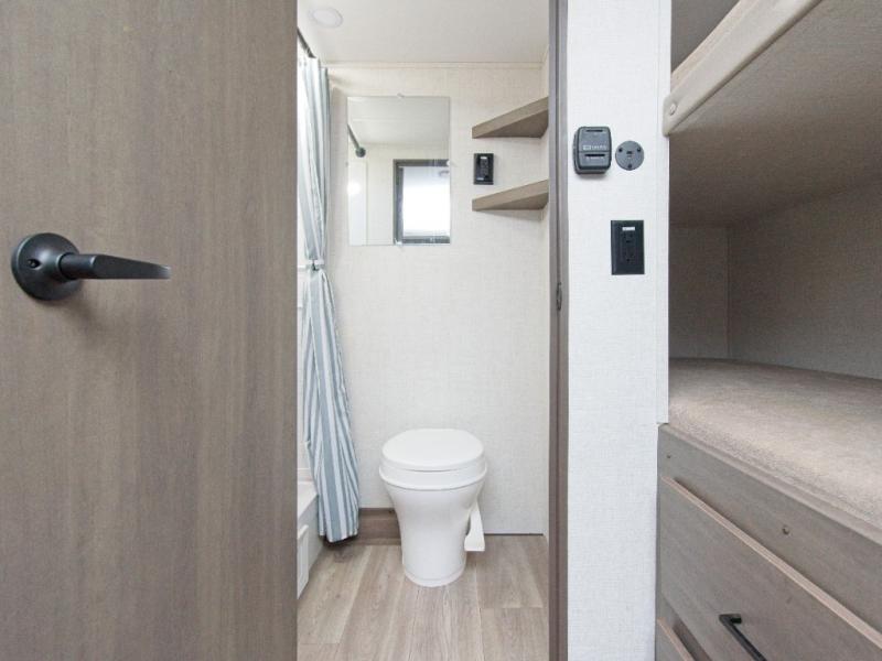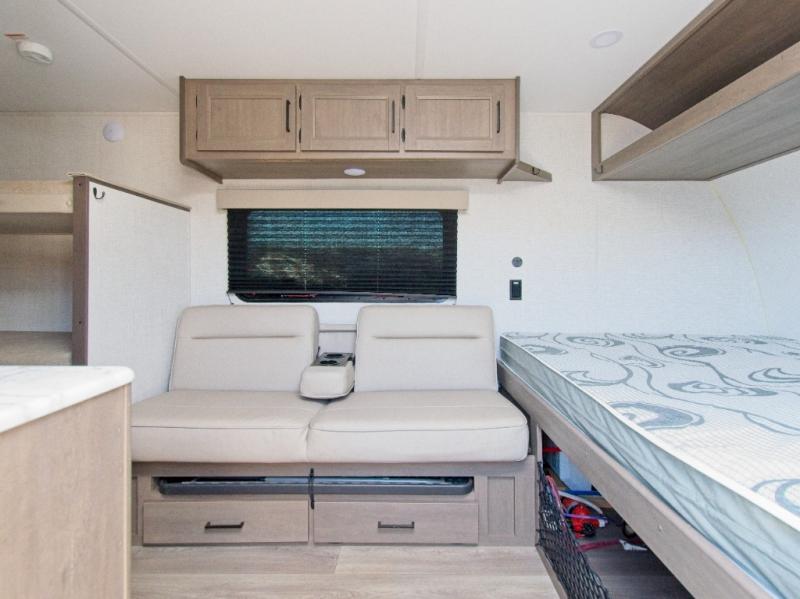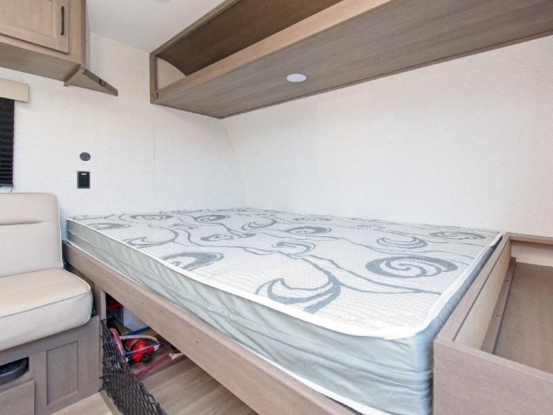 Travel light without sacrificing comfort in the Grand Design Transcend One 151BH, featuring cozy bunk beds and an unobstructed pass-thru storage for all your gear.