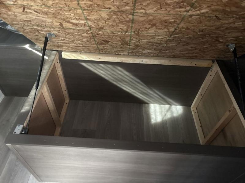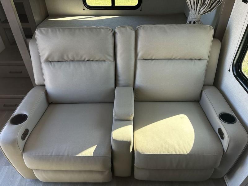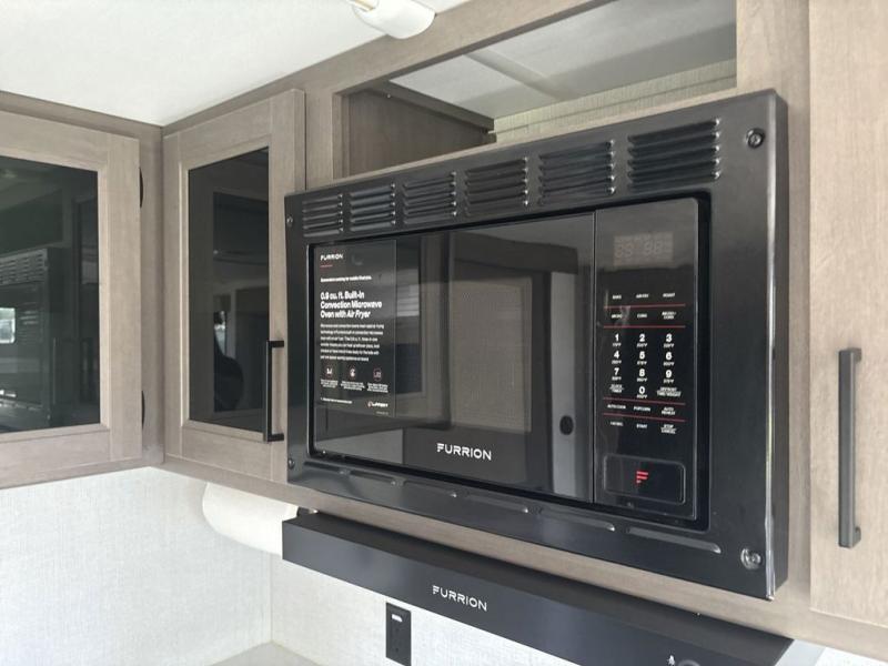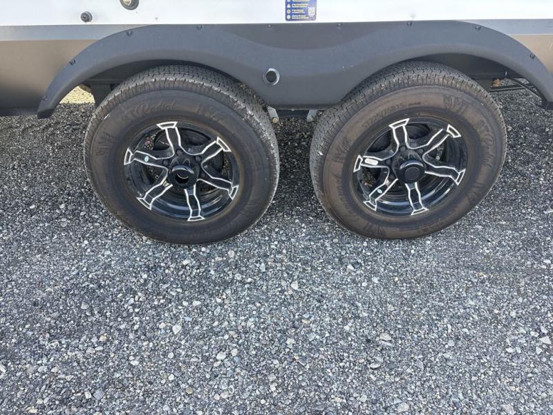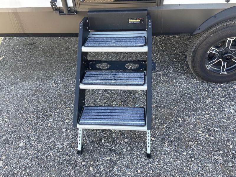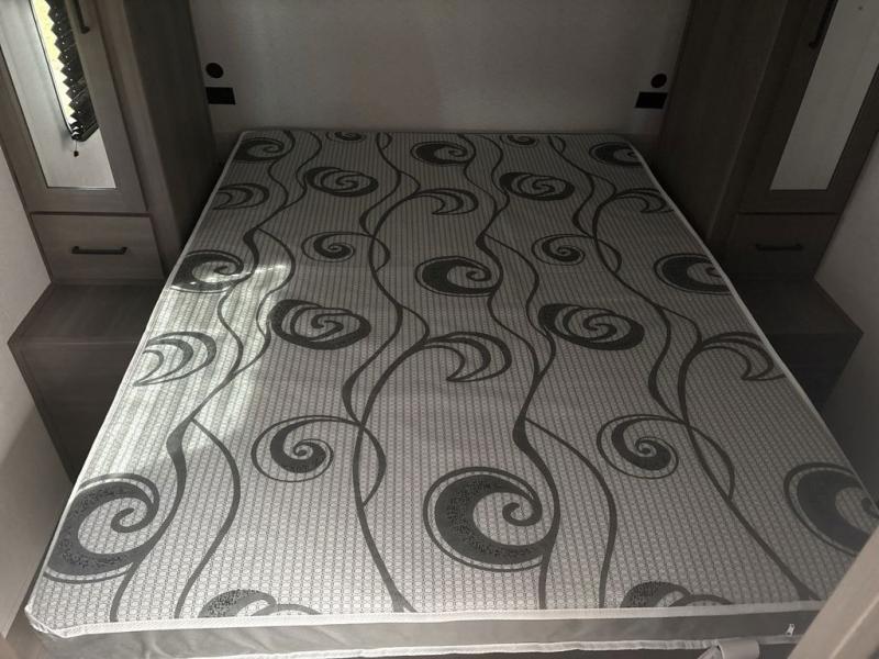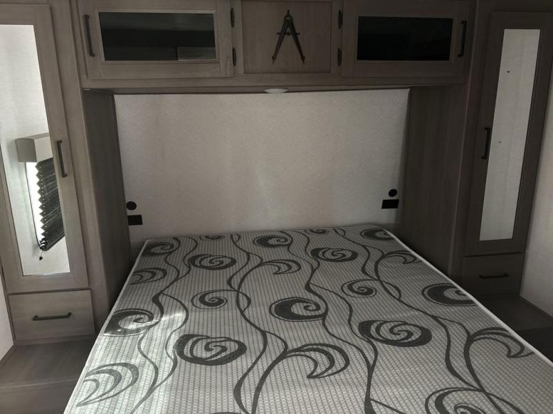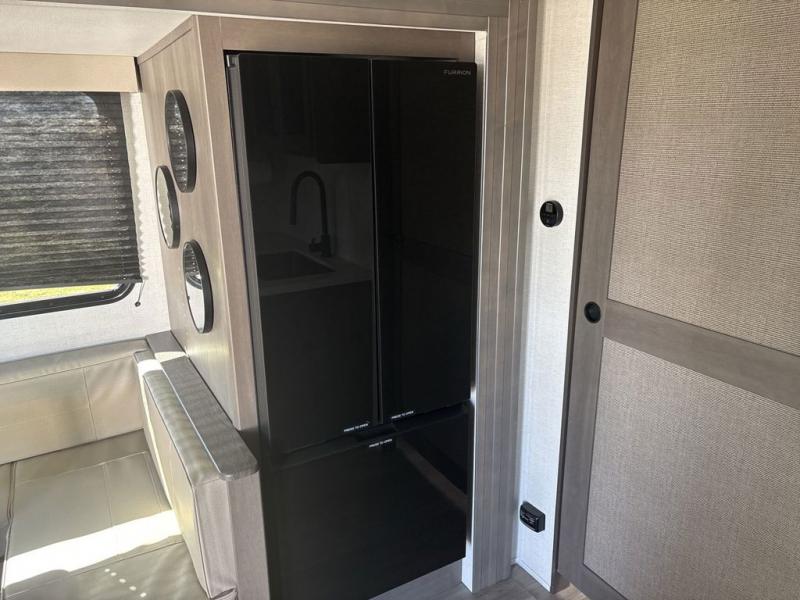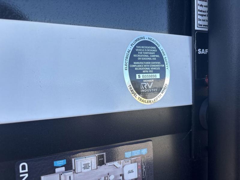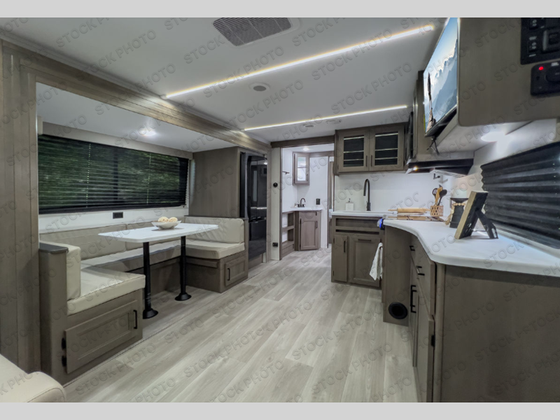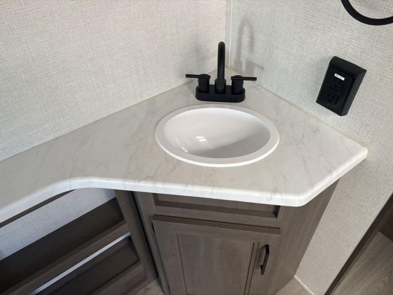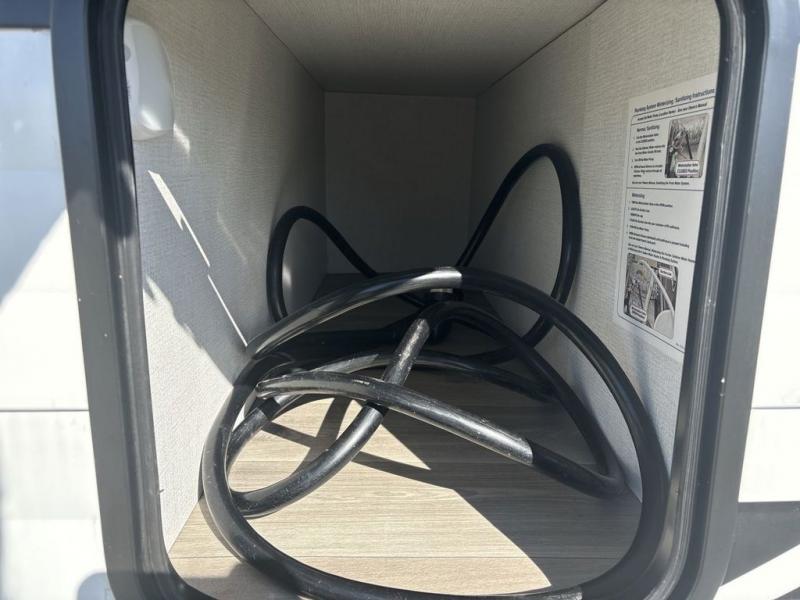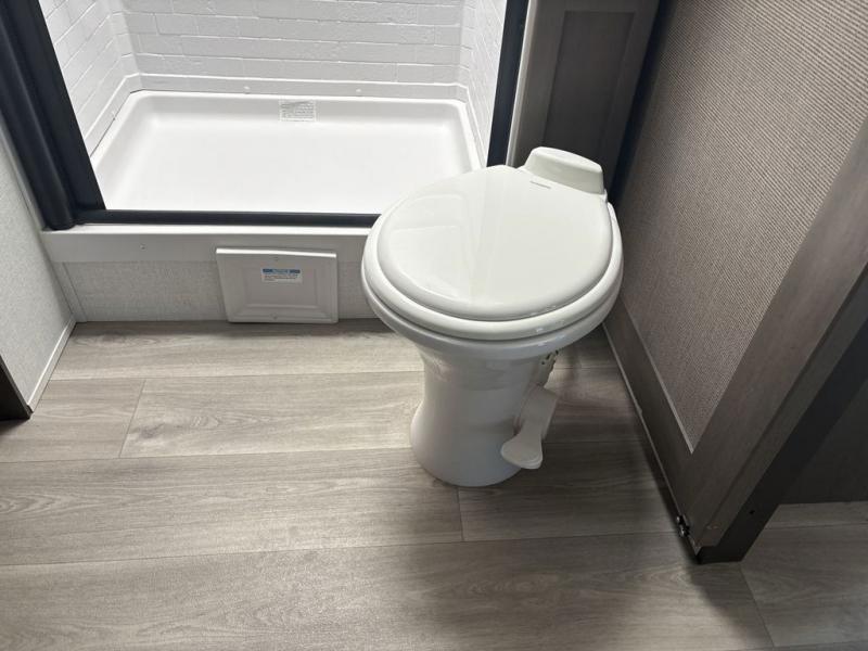 Your crew of eight will love camping in this spacious travel trailer! There are double-size bunks in the back with step storage and an added wardrobe for your guests' things plus exterior storage for camp gear galore. A walk-thru bath will create a front master bedroom you are sure to love, especially with its queen bed, wardrobe storage, and private exterior entry door! The main living area will be a favorite place to hang out with its U-shaped dinette, theater seating and 32" TV. If the weather is nice, you may just find yourselves outdoors since there is a rear exterior griddle and 1.7 cu. ft. refrigerator!