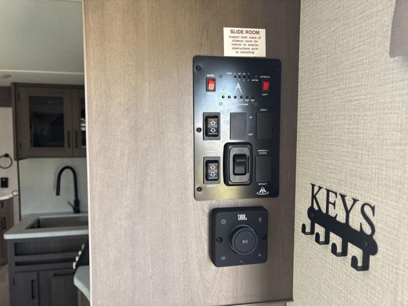 With any Transcend travel trailer by Grand Design, you will enjoy upscale appointments and convenient amenities to make each camping experience one to remember! The Quad Seal technology, residential insulated walls, plus heated and enclosed underbelly with suspended tanks make these units solid and durable. There is a black automotive glass door outside, along with a Safe-T-Rail assist on the main entry door, backup camera prep, and a universal docking station. JBL interior and exterior speakers plus a JBL head unit will let you listen to your favorite tunes as you visit under the power awning with LED strip lights. Inside, you'll enjoy multiple outlets to keep your gadgets charged, thermoformed and seamless countertops, and a 6' 6" interior height so you won't feel closed in. The Solar Prep Package will allow you to enjoy off-grid capabilities with a 200W solar panel, which is wired for up to 600W, a 30 AMP Bluetooth solar controller, a 2000W inverter prep, and more!
