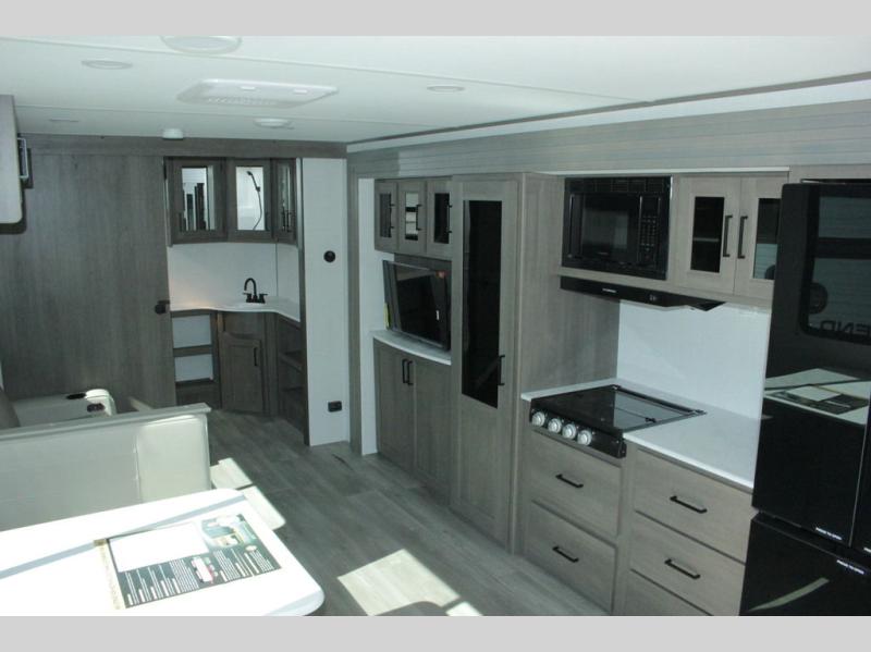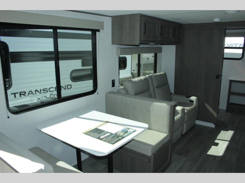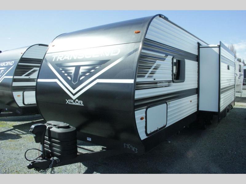 The customer-focused, quality-built Transcend Xplor travel trailers by Grand Design are your ticket to fun and adventure. You will appreciate the power tongue jack when it comes time to set up, as well as the all-in-one utility center and the detachable power cord with an LED light. These models include many outlets throughout, USB ports to charge your gadgets, and a JBL exterior speaker to listen to your favorite tunes. The interior of the Transcend Xplor will have you feeling right at home with upgraded residential furniture, residential countertops, residential cabinet doors, and the list goes on!