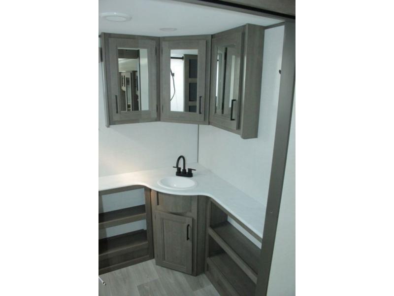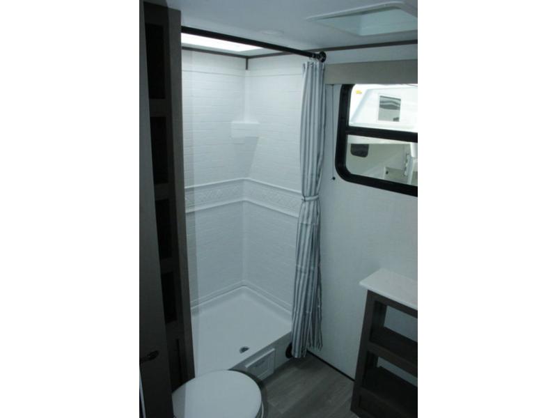 Your search for the perfect couple's trailer is over with this RV in tow! You will enjoy your own private bedroom up front with a queen bed, overhead storage, and TV prep if you choose to bring along your own television. The spacious full rear bath includes a linen closet and a walk-in shower to easily clean up each day. Relax on the 60" sleeper sofa after a long day outdoors, or you can choose the optional theater seating if you don't need additional sleeping space. The booth dinette can also be used for an overnight guest or two little ones. This model also includes plenty of storage space and plenty of counter space to prep and cook at-home meals! Finally relax under the shade of the massive 19' awning.