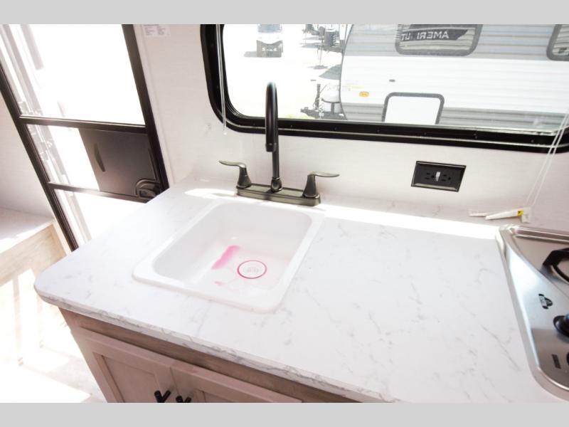 The Ameri Lite Super Lite series is constructed for easy towing and long lasting value. Features include a one piece vinyl roof, tankless water heater, USB charging ports, and a central control panel for convenience.