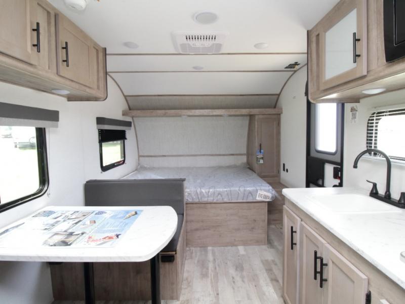 Inside, enjoy thoughtful design touches like high-performance vinyl flooring, craft-made cabinetry, and a white kitchen sink. With a 6’8” interior height, wood ceiling trim, and USB charging ports, the space feels open and connected.