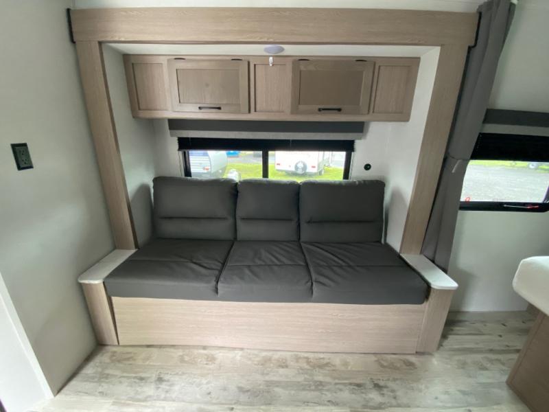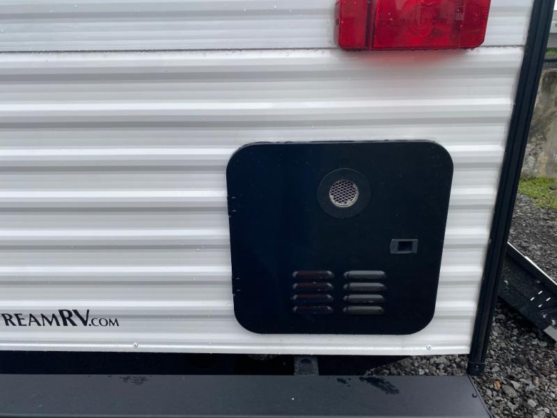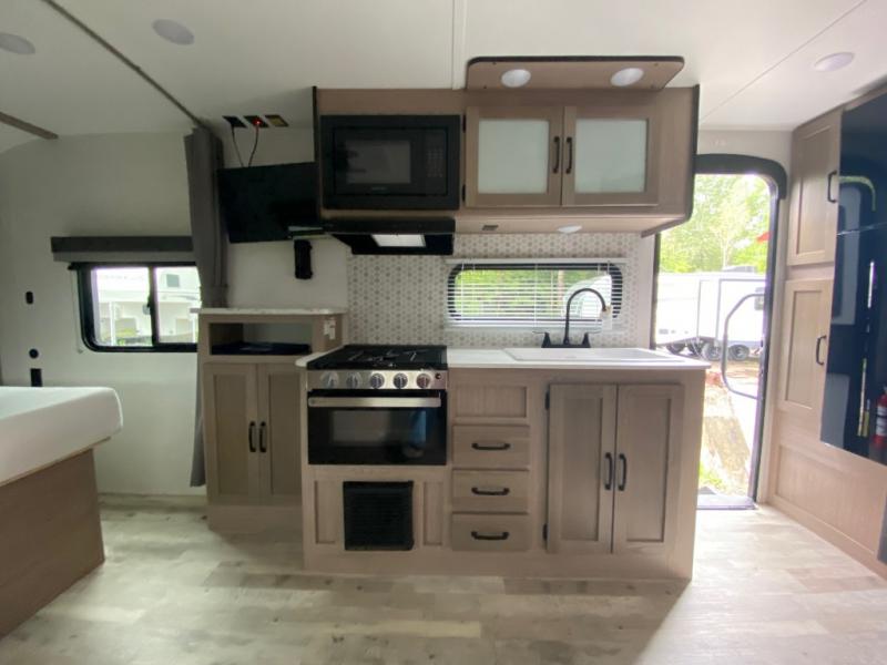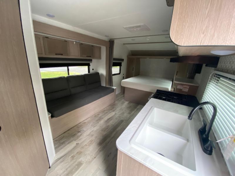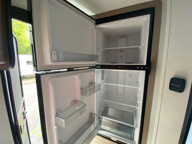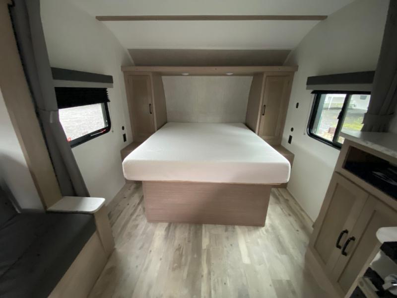 It's time to ditch that old tent and upgrade to this cozy trailer trailer! You will love having your own queen bed to sleep on instead of an air mattress, and you even have dual wardrobes and a nightstand to store your things. And you won't have to use the camp's facilities since there is a full bath in the rear corner. Meals can be made on the three burner cooktop or in the microwave oven, and the 10.7 cu. ft. Everchill refrigerator/freezer included means you won't have to keep food cold in a cooler all weekend. Once dinner is made, you can dine at the jack knife sofa with a folding table, and any guests you may have can sleep here for the night. There is even a slide out for more space; how convenient!