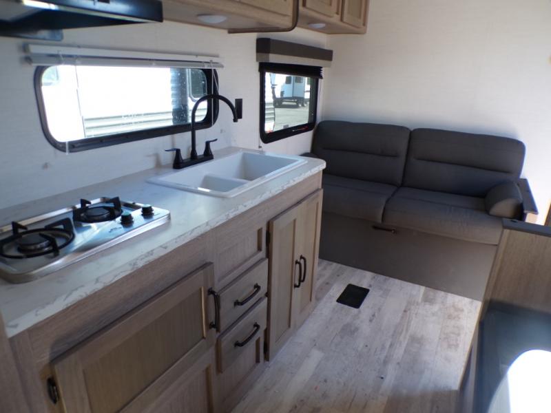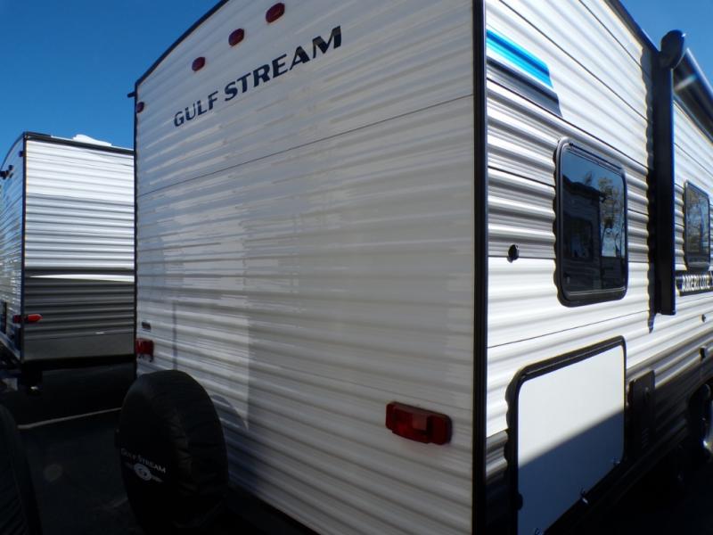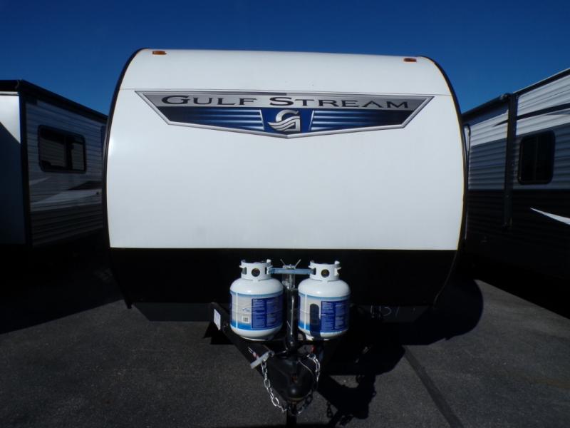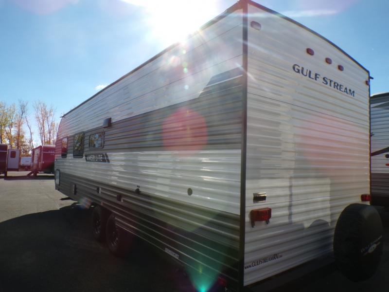 The Ameri-Lite Ultra Lite travel trailers by Gulf Stream are the perfect RV for families wanting to start their camping lifestyle, but not break the bank. These lightweight units are built with a diamond plate lower front, a one-piece synthetic vinyl roof, and a uni-body construction with steel hurricane straps tying the walls to the floor for added durability. The front power hitch jack and four stabilizer jacks will make set-up hassle-free once you arrive at the campground, and you can put out the electric awning to rest in the shade when you're done. Each model includes convenient amenities, like the 13,500 BTU A/C, the tankless water heater, a central control panel, and multiple USB ports for your tablet, phone, and camera! The inside is designed to make you feel at home with radiant LED lighting, designer kitchen backsplash, pleated privacy shades, craft-made cabinetry, plus many more features. Start your RV lifestyle with an affordable, lightweight Ameri-Lite Ultra Lite travel trailer today!