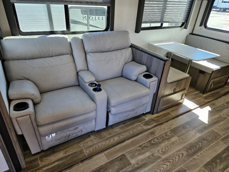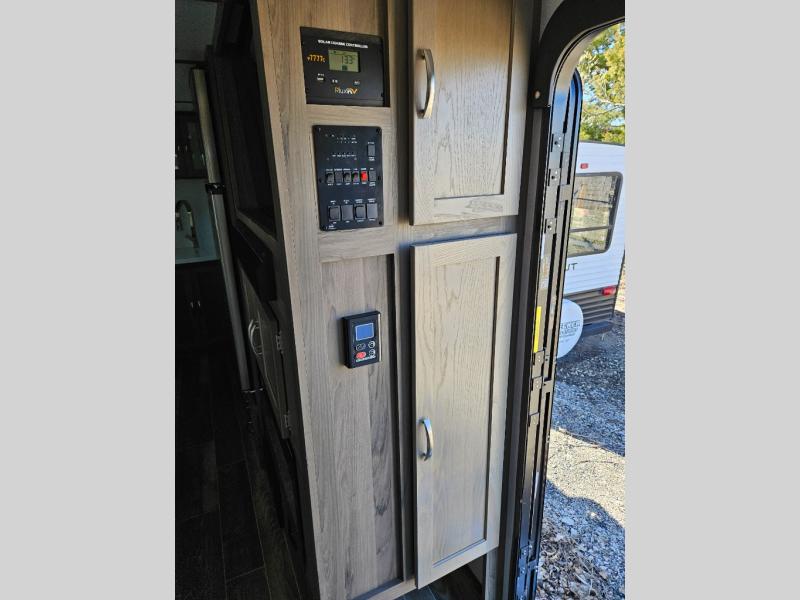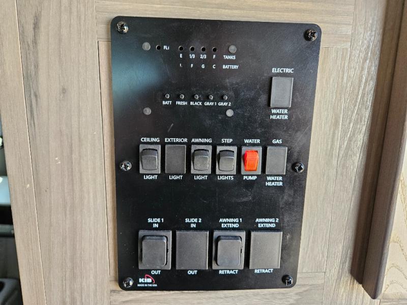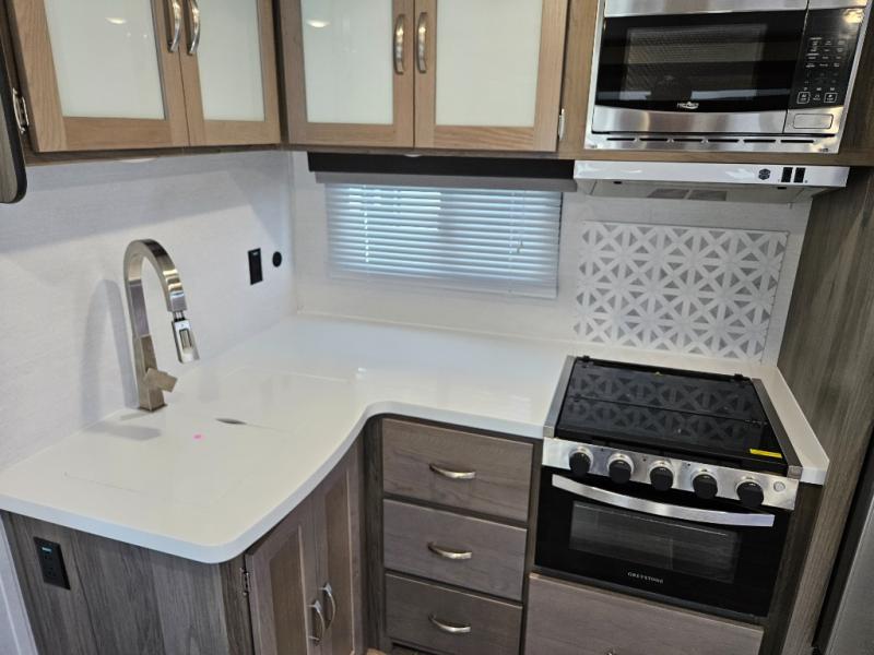 Each Envision Luxury Series travel trailer by Gulf Stream is constructed with fiberglass exterior sidewalls with Azdel, a fiberglass front cap with LED lights, and a one-piece rubber roof for durability. The central command switch panel with a monitor panel lets you control your trailers functions in one easy location, and the tech-ready features will let you add solar, Wi-Fi, or back-up camera if you choose. Solid wood cabinetry, designer window treatments, and stainless-steel appliances will make these models feel more like home, plus there's tons of storage space for your belongings. Some of the exterior features that will blow you away are the marine-grade exterior LED speakers, the power awning with LED lights, and the exterior docking station for your utility hookups.