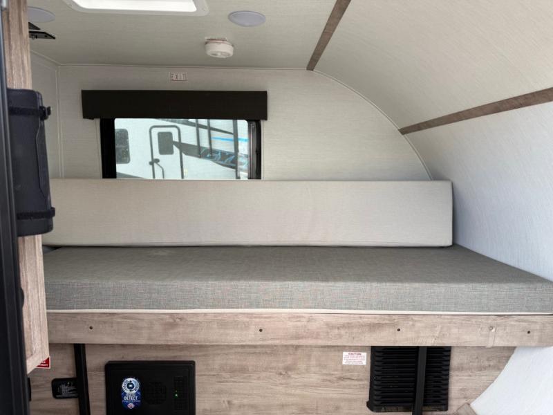 Feature Specification Dry Weight 1,510?lb Hitch Weight 240?lb Net Carrying Capacity 2,250?lb Length (with hitch) 11'?10" Fresh Water Capacity 9?gal Grey & Black Tanks None Furnace 19,000?BTU Water Heater 6?gal propane Propane Tank 20?lb Sleeps 2 (couples) Build Materials Aluminum or fiberglass sides (depending on model)