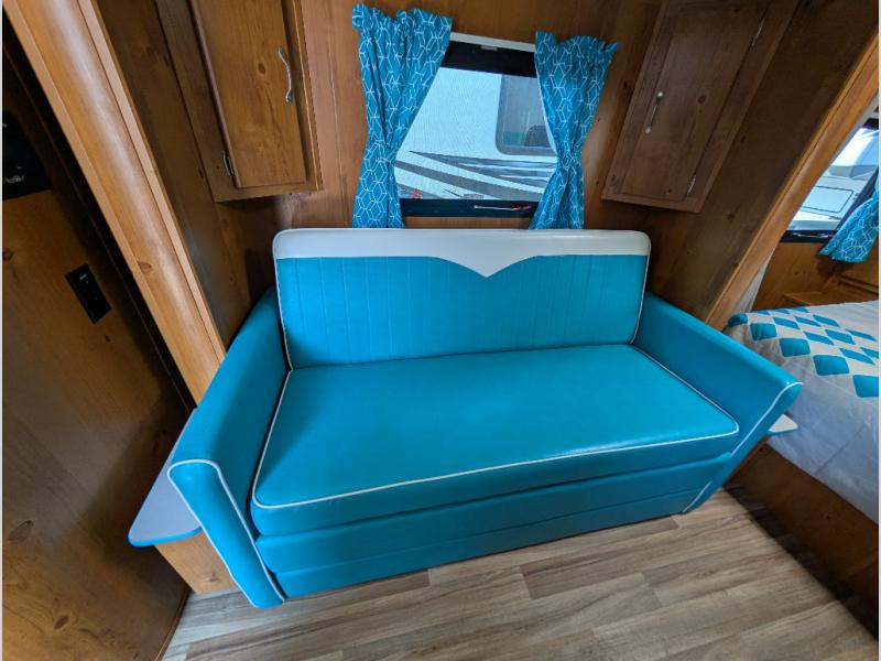 With any Vintage Cruiser by Gulf Stream you will be taken back to the fun of the 50's with vintage exterior graphics and classic interiors. Each model is constructed with a six-sided welded aluminum frame, vacuum bonded sidewalls with Azdel, and a vintage painted bumper you are sure to love. The Vintage Cruiser travel trailers include high-performance vinyl flooring, LED interior ceiling lights, a seamless tub/shower surround, and vintage flat cabinet doors to name a few comforts you'll find throughout. Some of the stand-out features found within the Vintage Package include a tankless water heater, a 100W roof-mounted solar panel with a controller, Goodyear Endurance tires, and more!