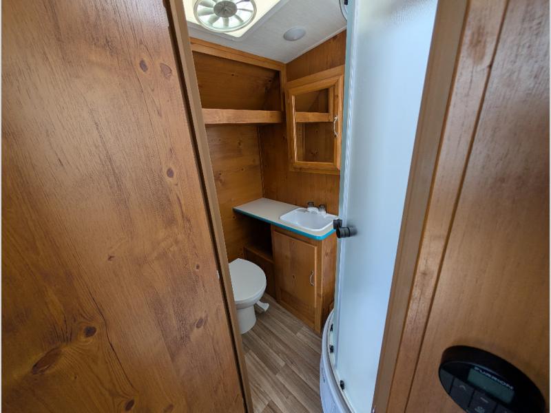 You'll enjoy every minute spent in this roomy travel trailer for four. The sofa bed slide with a table in front of it will provide more space, plus an area to relax, eat, and sleep a guest or two. A front RV queen bed will make this model feel more like home, especially with dual shirt closets on either side of the bed for your clothes. Whip up your best meals on the cooktop, or use the microwave oven if you're on the go. This model also includes an 8 cu. ft. 12V refrigerator and a pantry/closet for plenty of storage space!