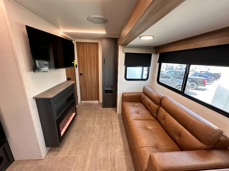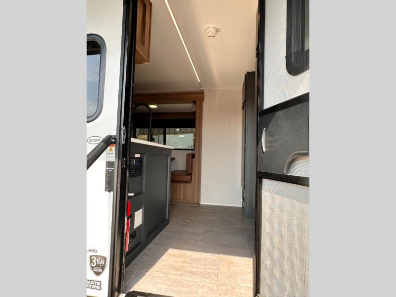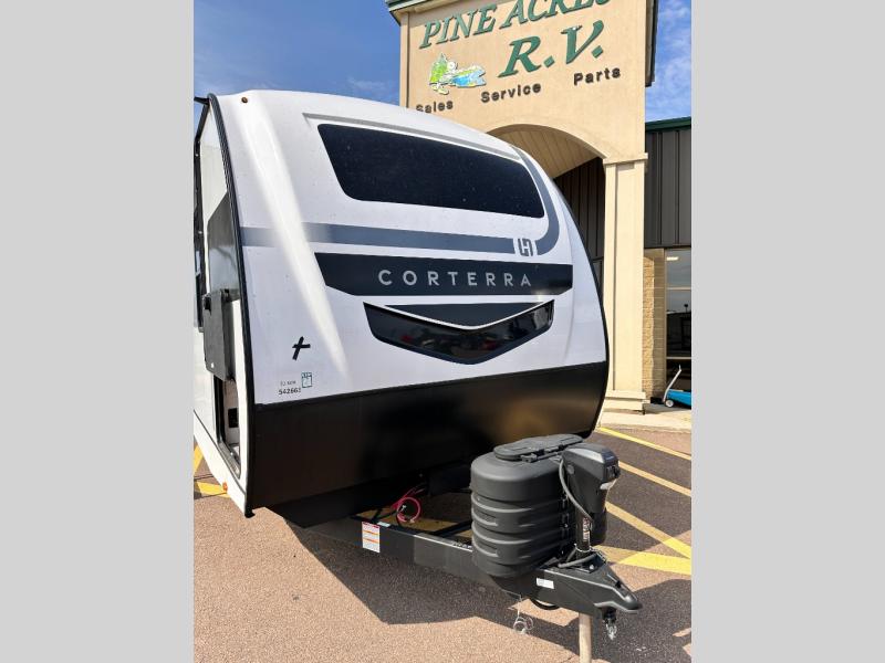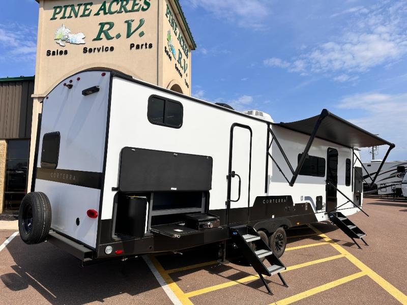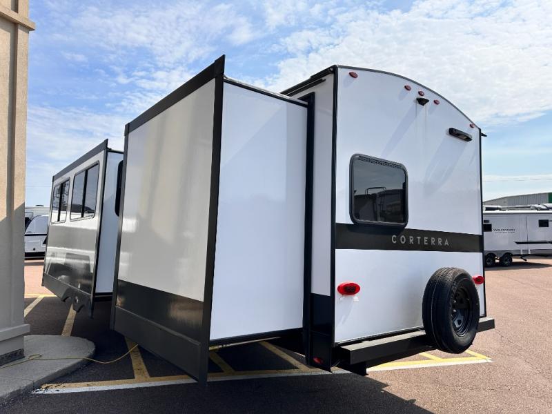 Explore the open road with any one of these Heartland Corterra fifth wheels or travel trailers! They are built with a 8" I-beam, Azdel Onboard composite sidewalls, and a heated and enclosed underbelly to protect your unit's vitals. The Vault XL and color coded wiring makes it easy to navigate through it and the exclusive TRIO airflow AC system ensures maximum cooling to keep you cooled off on a hot summer day. You can safely enter and exit the unit through the deluxe tinted glass entry door with Extended Safe-T entry grab handle. The interiors abound in luxury with hidden storage throughout, a wine and/or coffee bar for entertaining, and a residential appliance package for home cooked meals everywhere you go. Come find your favorite one today!