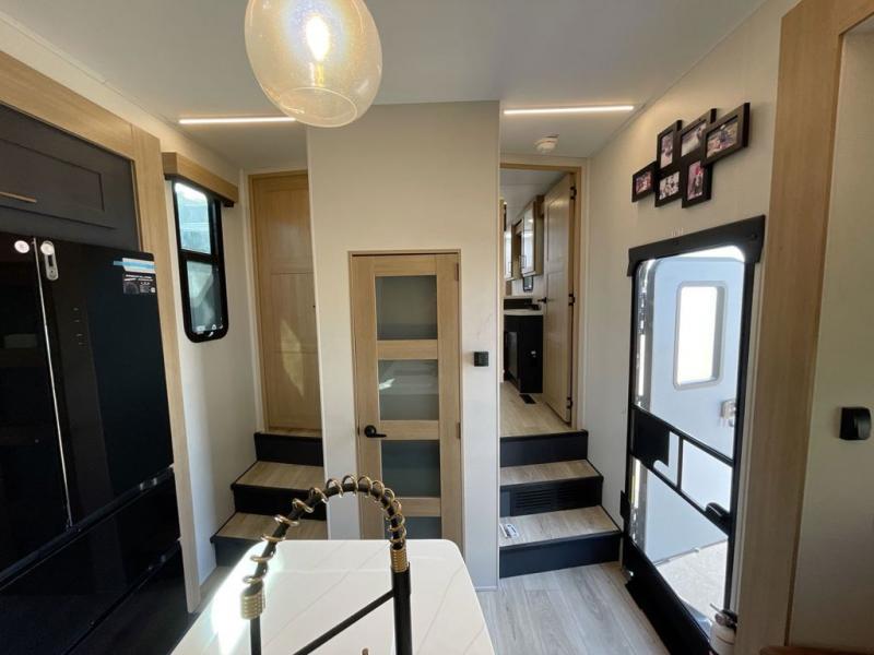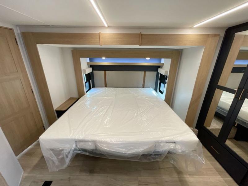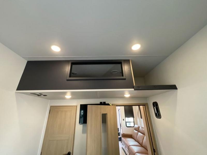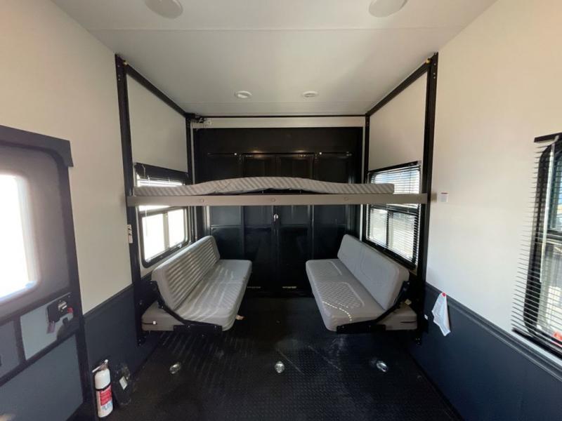You're going to love every minute spent in this spacious toy hauler. The 17' 9" garage includes a its own exterior entry door, a half bath, and sleeping space for five to six with the included loft. There is even washer and dryer prep here that will come in handy after trail riding. Everyone can meet in the main living/kitchen area that includes a kitchen island, a large sofa, and a 50" LCD HDTV for movie night. The front of this model is shared with the unique master bedroom and bathroom that includes a tilting king bed slide out, a spacious full bath with dual bath sinks, and tons of storage space for all your belongings!