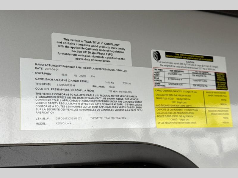 Used 2025 Heartland Cyclone 4215 Toy Hauler Fifth Wheel