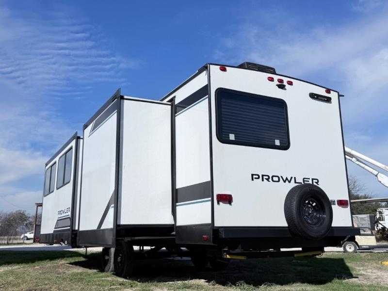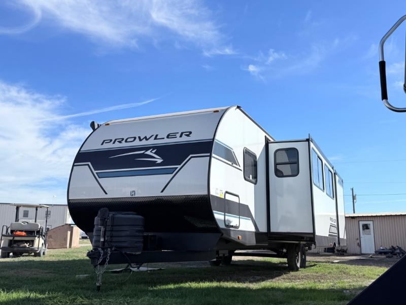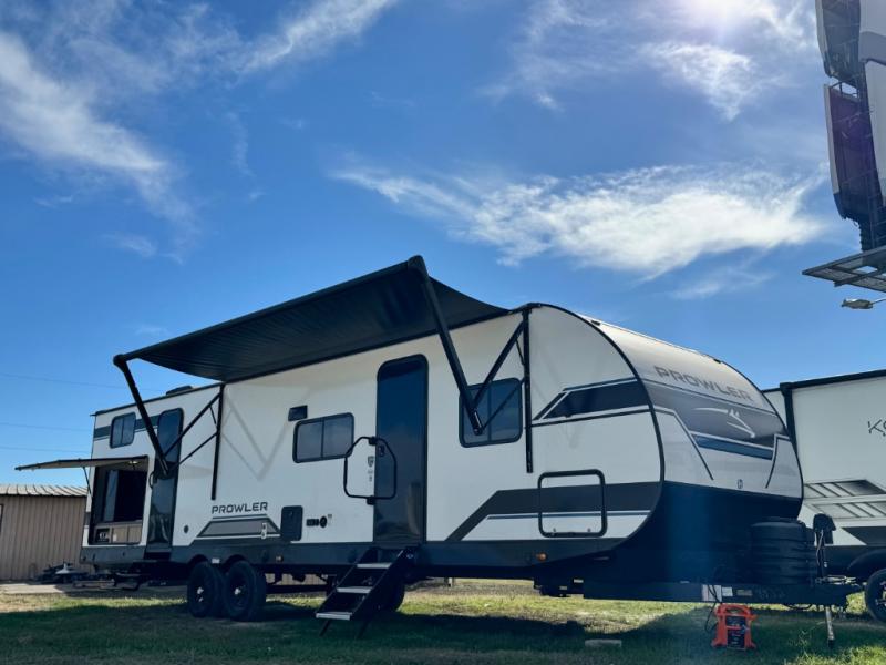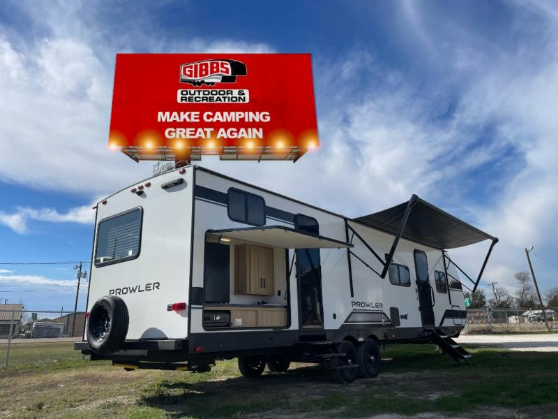 Get ready for comfortable and easy camping with the Prowler travel trailers by Heartland. These models feature durable construction with a performastructure aluminum front wall, a cambered structural steel I-beam frame, and a fully walkable roof. The MEGA bright pass-through storage features 52 cu. ft. of exterior storage with mega sized access doors, LED lights, and a finished interior to keep your gear secure. You'll fall in love with the at-home kitchen the includes Duralast countertops, a residential refrigerator, plus a stainless steel double bowl undermount sink for easy clean-up. These travel trailers also feature panoramic windows, an EZ clean interior, USB charging ports throughout, and many more comforts! Don't let the Prowler travel trailers slip away. Don't let the Prowler travel trailers slip away. Choose your favorite floorplan today!