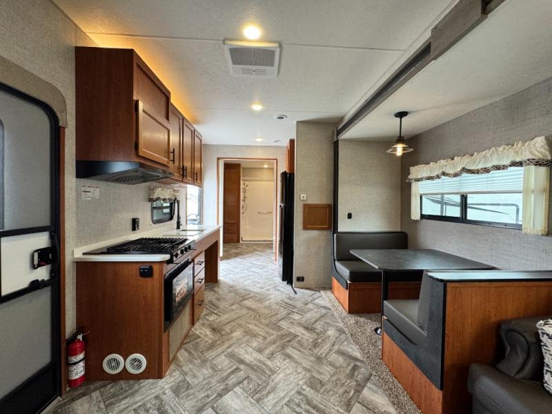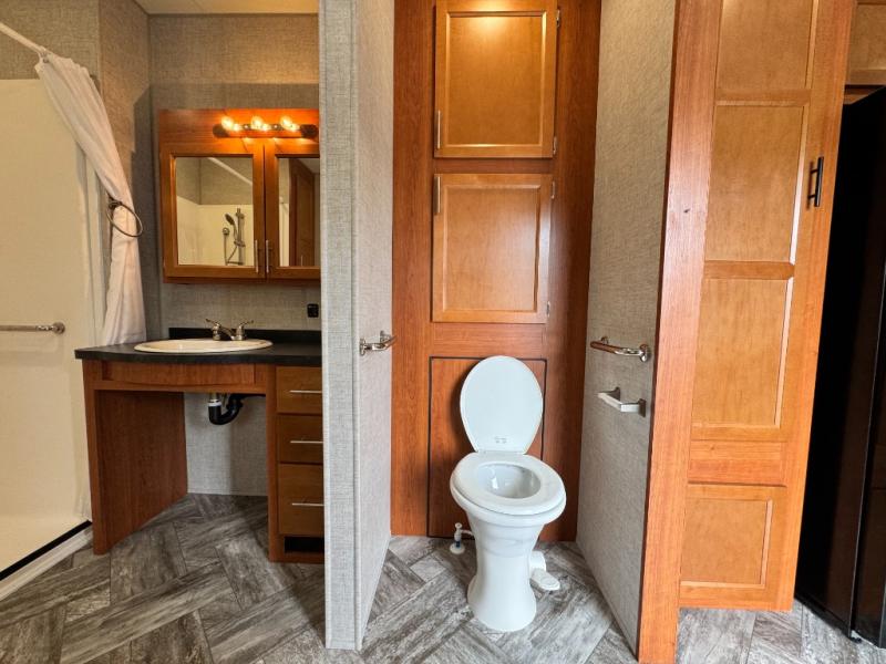 This Hy-Line 38 Premier has been gently used but it has never been slept in. It’s exceptionally clean and move-in ready — a rare find for anyone wanting an accessible destination trailer without the typical wear that comes with used units.